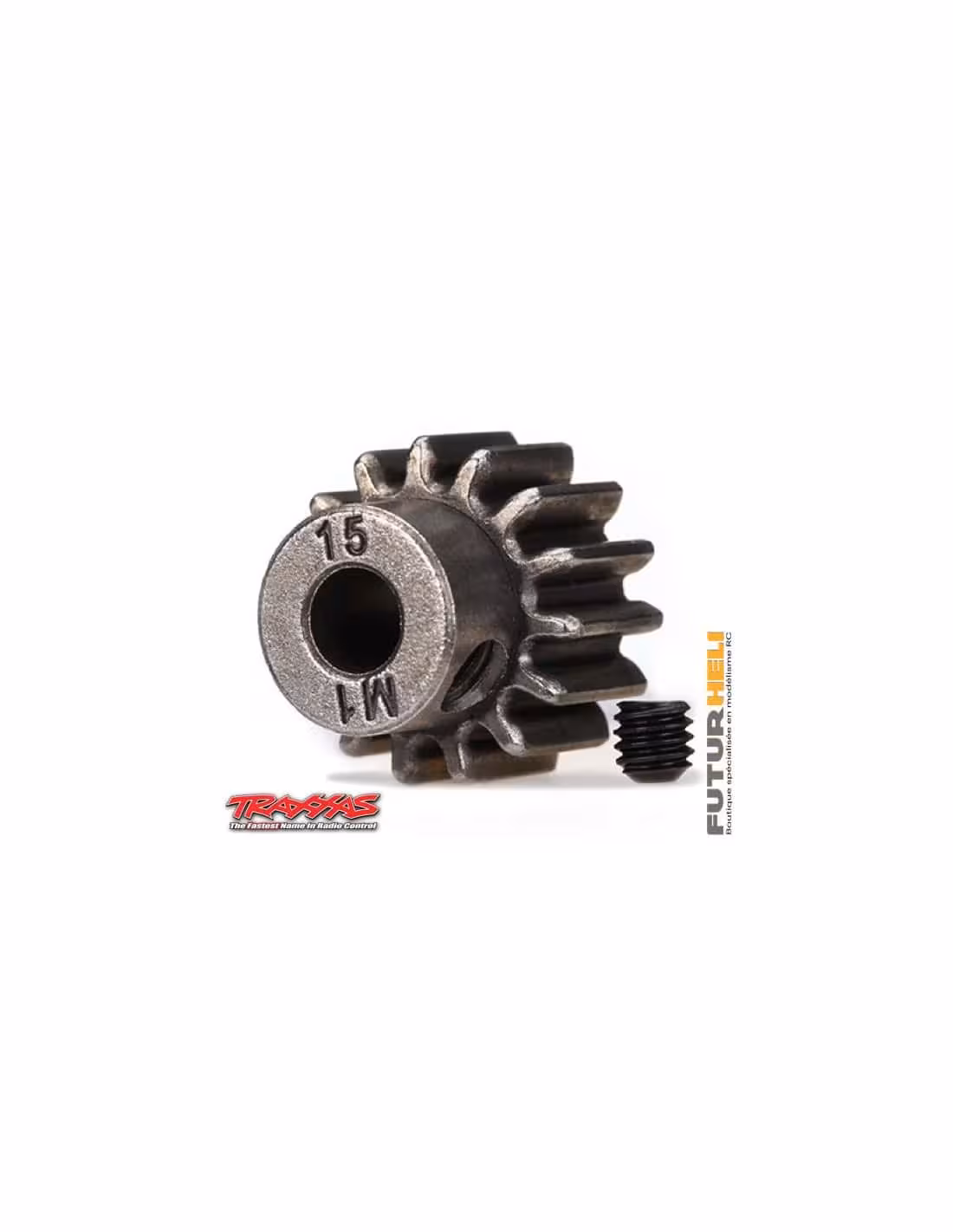 Pignons 15 dents module de 1,0 en acier pour moteur possédant un abre d'un diamètre de 5 mm.pièces d'origine du traxxas E-Revo® VXL Brushless et pièce option pour le Maxx et le X-Maxx