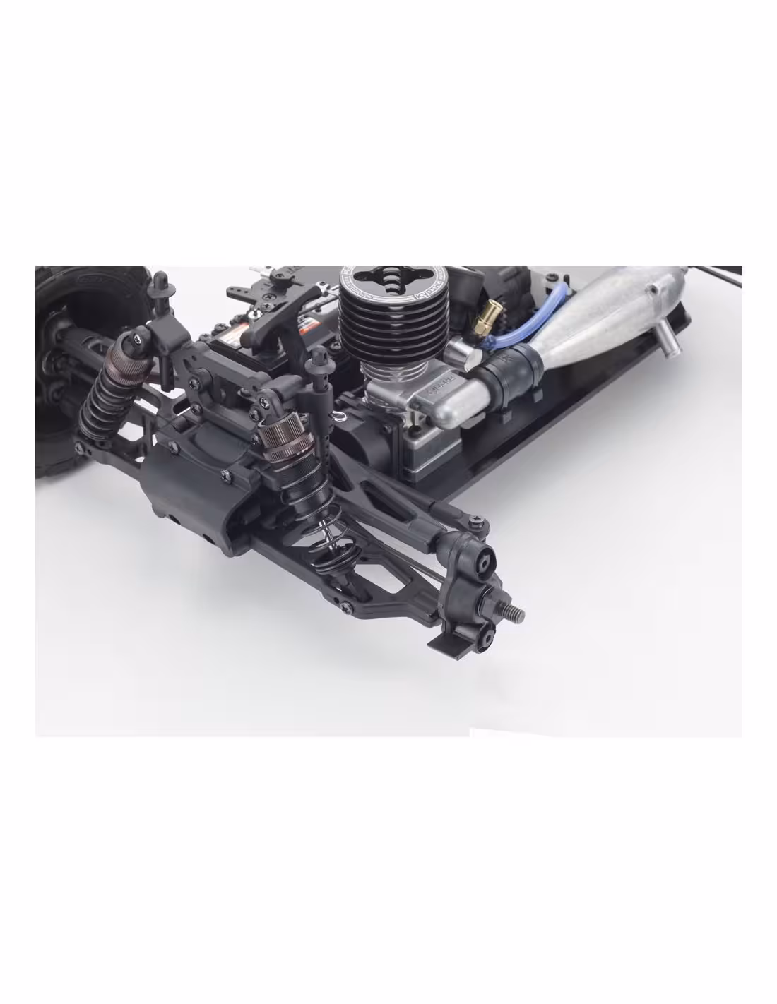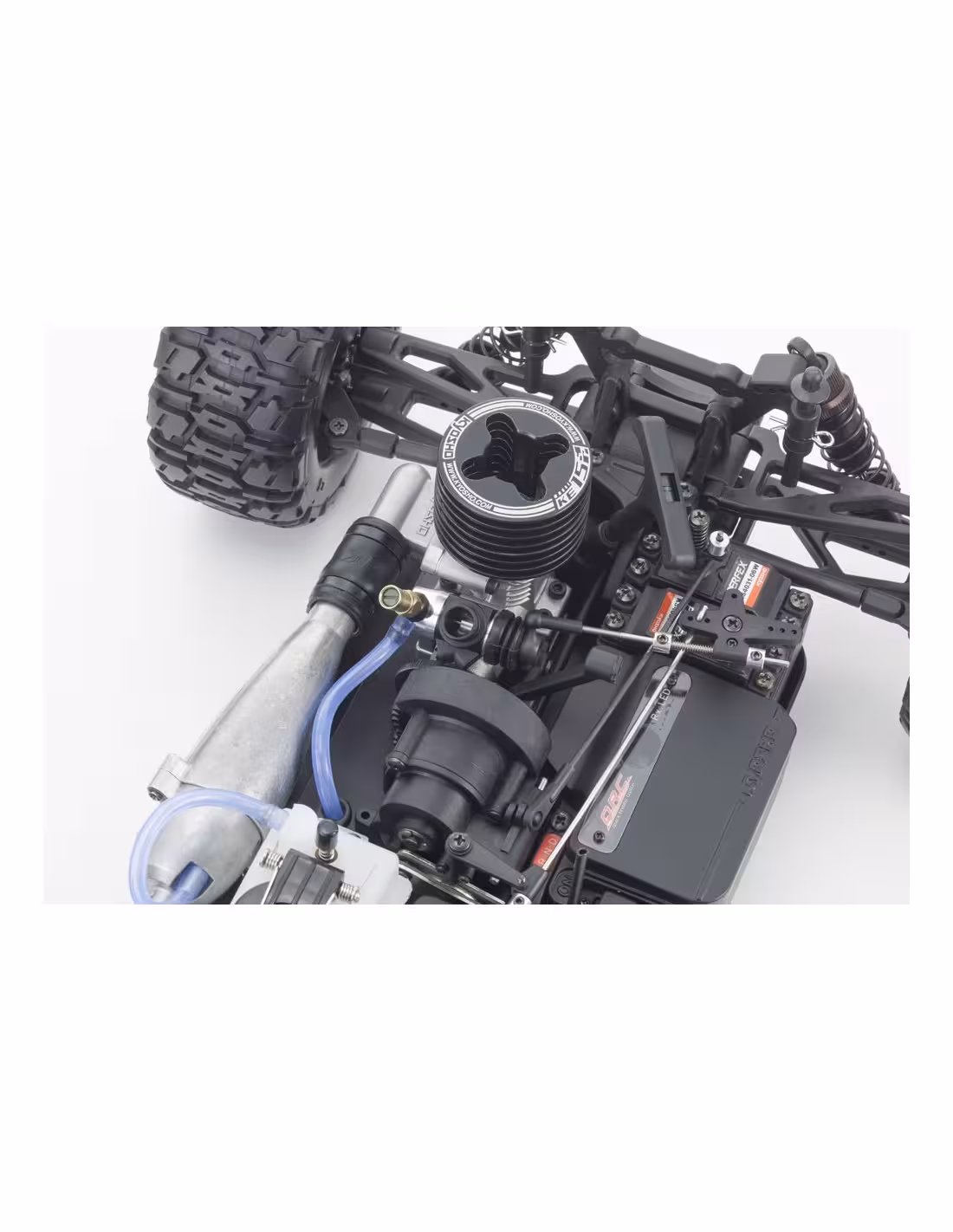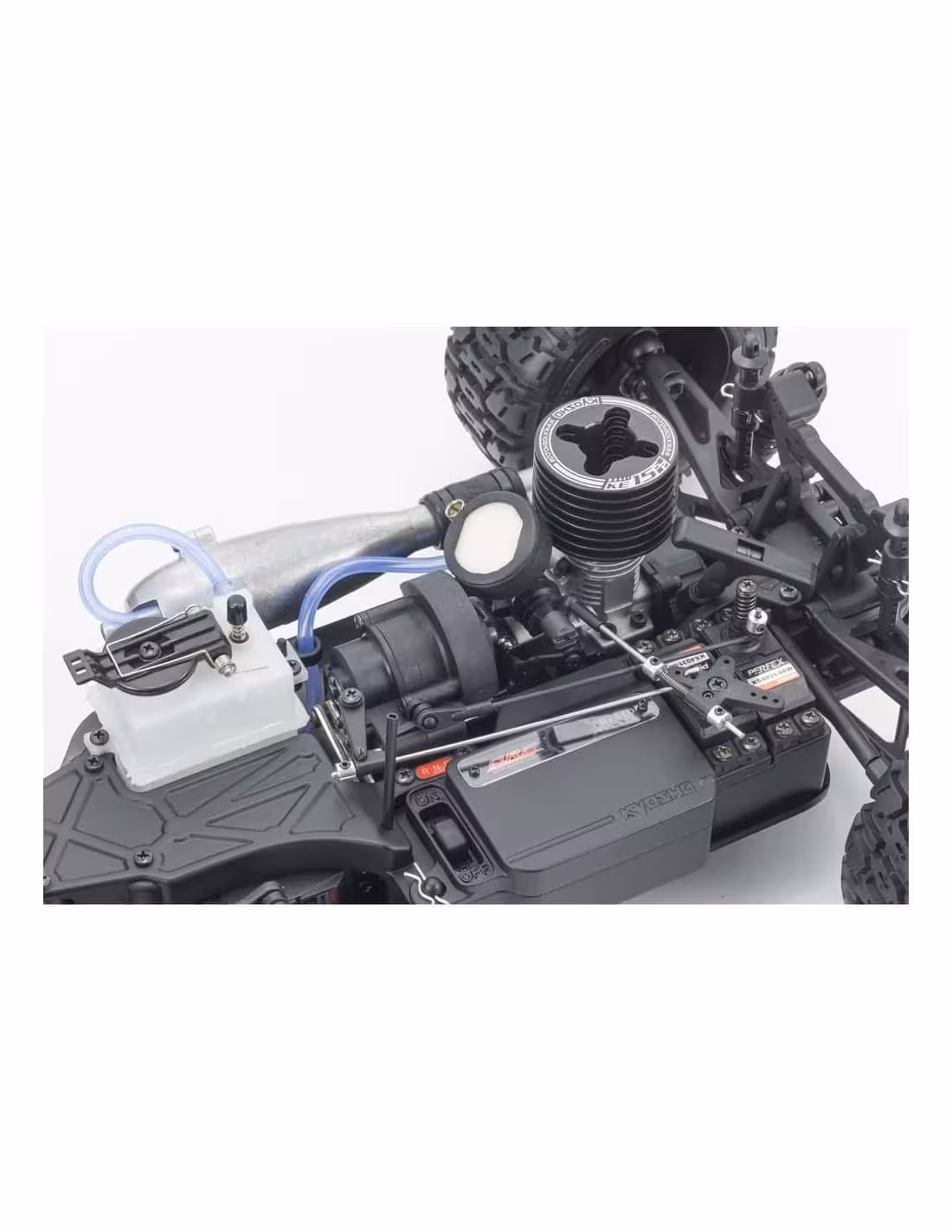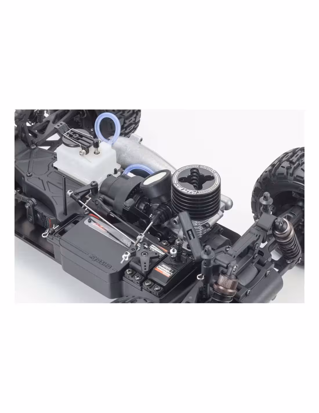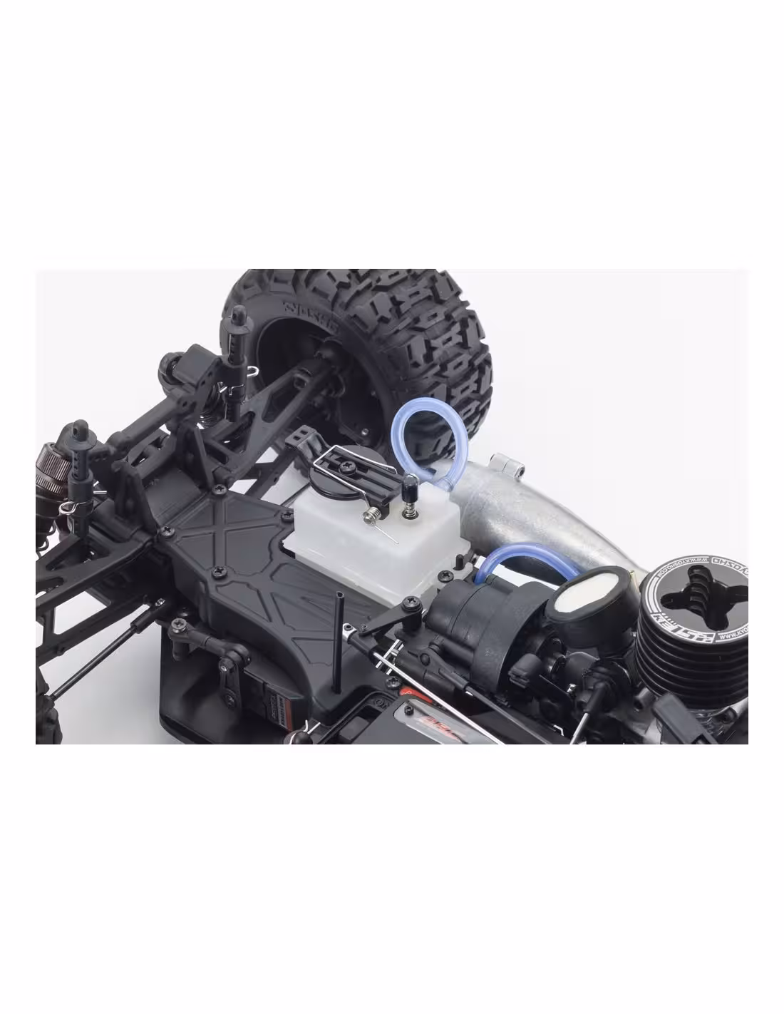 Kyosho Nitro Tracker un look et une conception différente beaucoup plus polyvalent que les autres modèles thermique car il possède une boite à vitesse.Qui dit boite à vitesse dit point mort et marche arrière, ce qui fait de ce buggy RC thermique un modèle à part. Un pilotage Fun grâce à son châssis à double triangulation d'une conception made in Kyosho robuste et fiable.