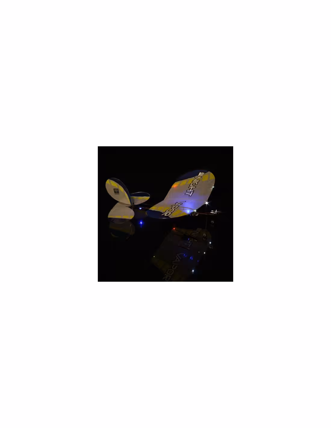 Avec son poids plume et sa vitesse de vol sûrement la plus lente du marché le Night Vapor vous permettra de voler dans les espaces les plus réduits.