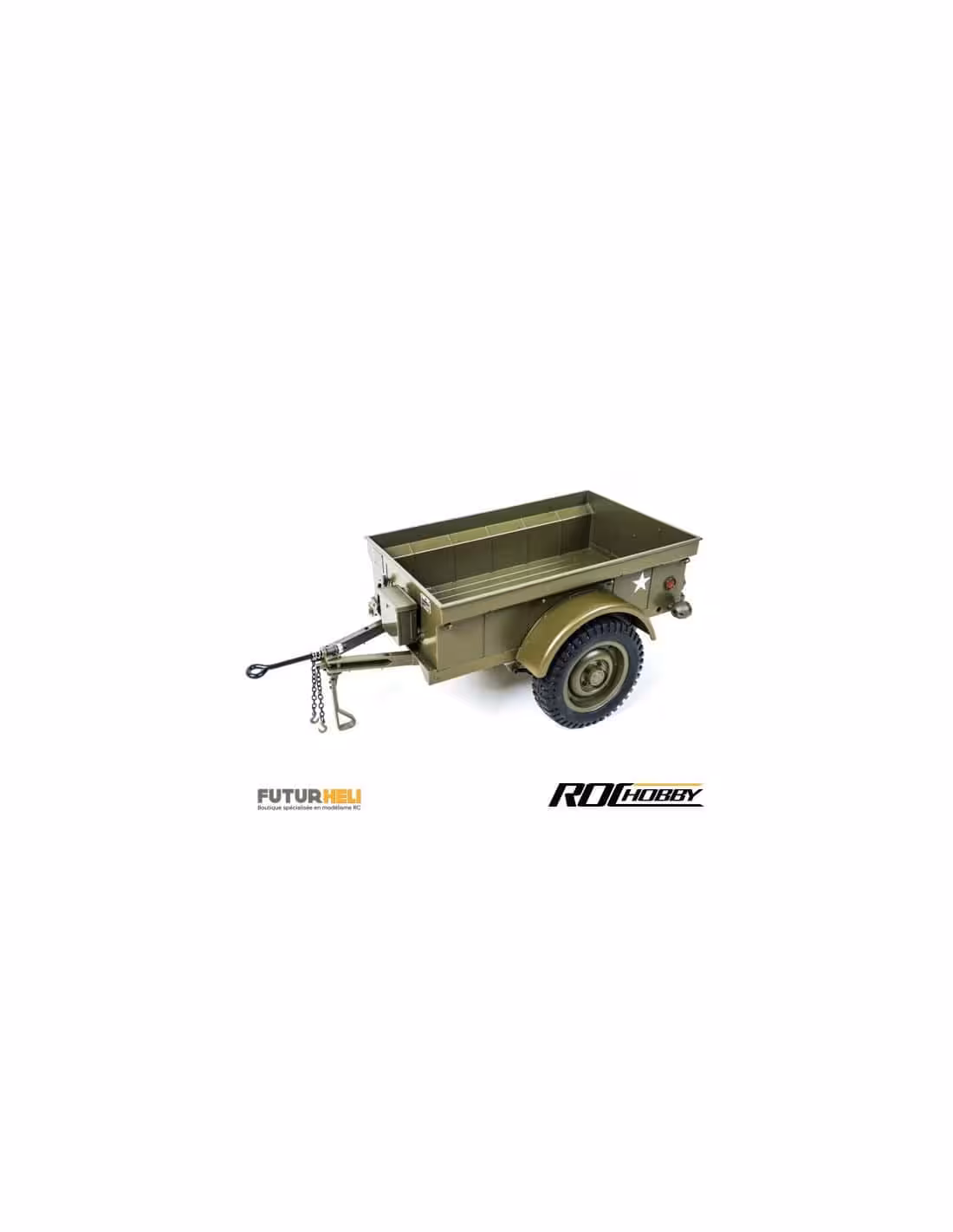 Remorque pour jeep 1941 au 1/6eme de la marque Rochobby revivez les heures du débarquement . livré assemblé et peinte.