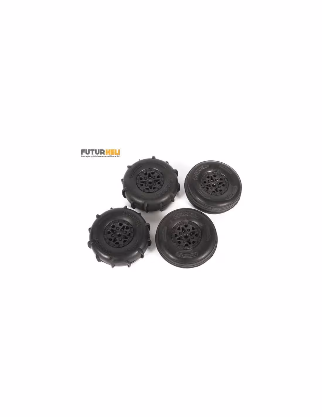 Axial AXI41000 Roues Arrière à palettes + roue avant en Caoutchouc souple pour Yeti Can-Am . hexagonal de 12mm .