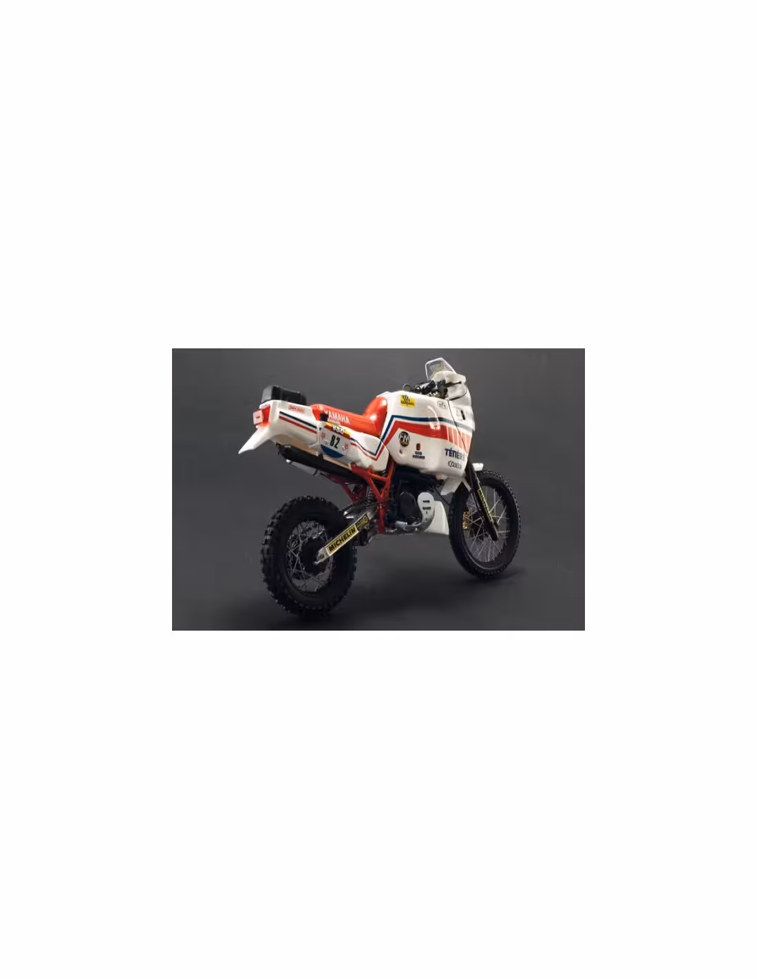 Italeri.Maquette au 1/9eme de la Yamaha XT 660 cc de 1986 participant au Paris -Dakar. Maquette à assembler et à peindre.La peinture et la colle n'est pas inclus. Instruction en français avec shémas et une planche de décoration sont fournis dans la boite.