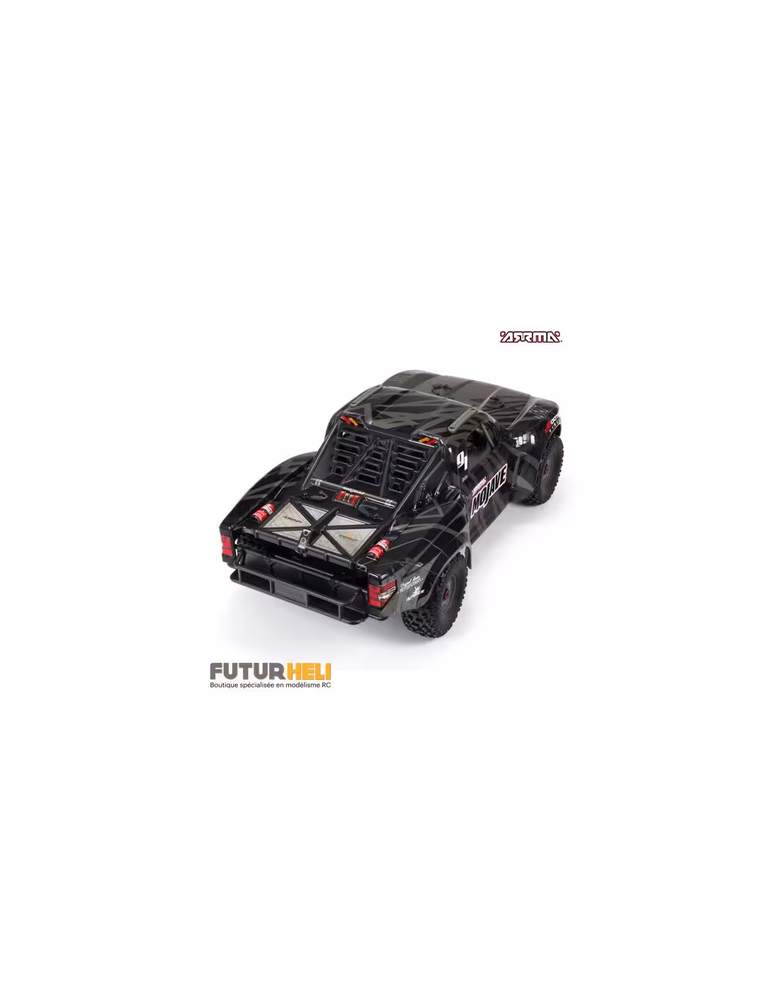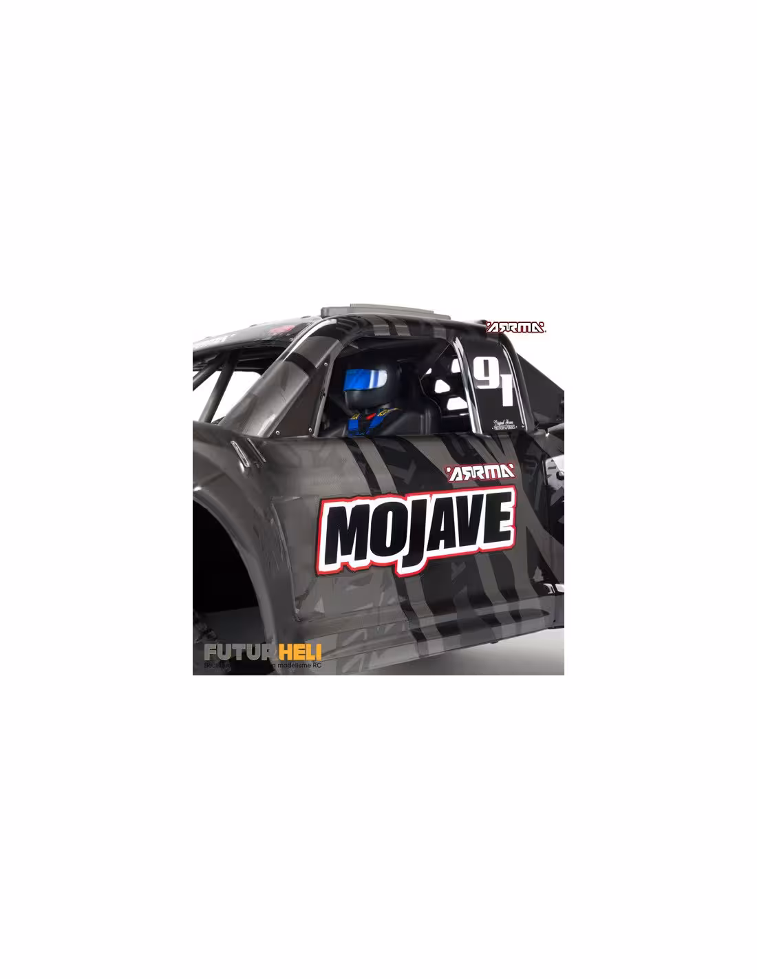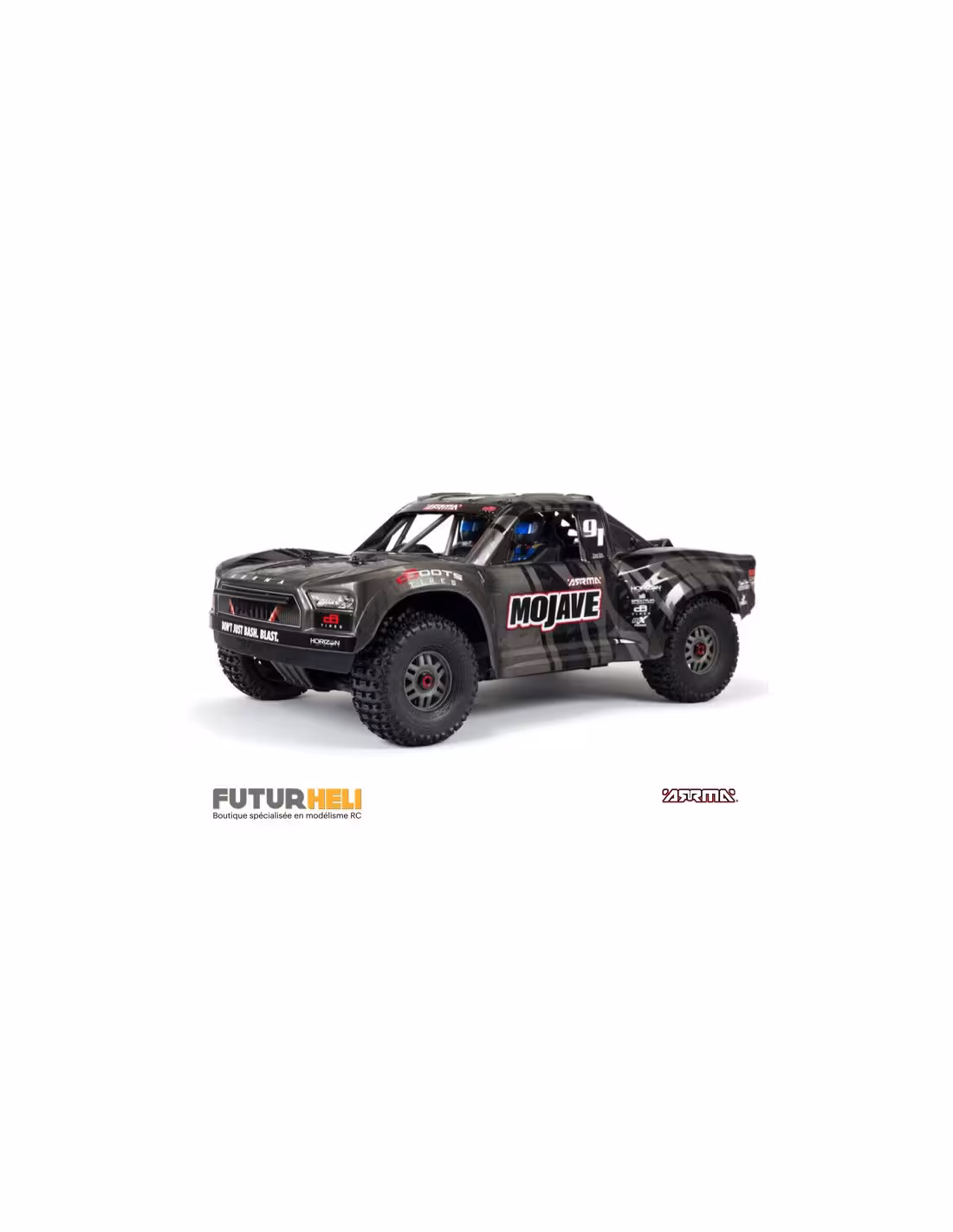 Arrma Mojave le désert truck à l'échelle 1/7 eme ce qui lui donne une longueur totale de 715mm. un engin digne des grands déserts de l'ouest américain qui peut atteindre les 95km/h.Un chassis renforcé avec des pièces en aluminium pour en faire une voiture quasiment indestructible.
