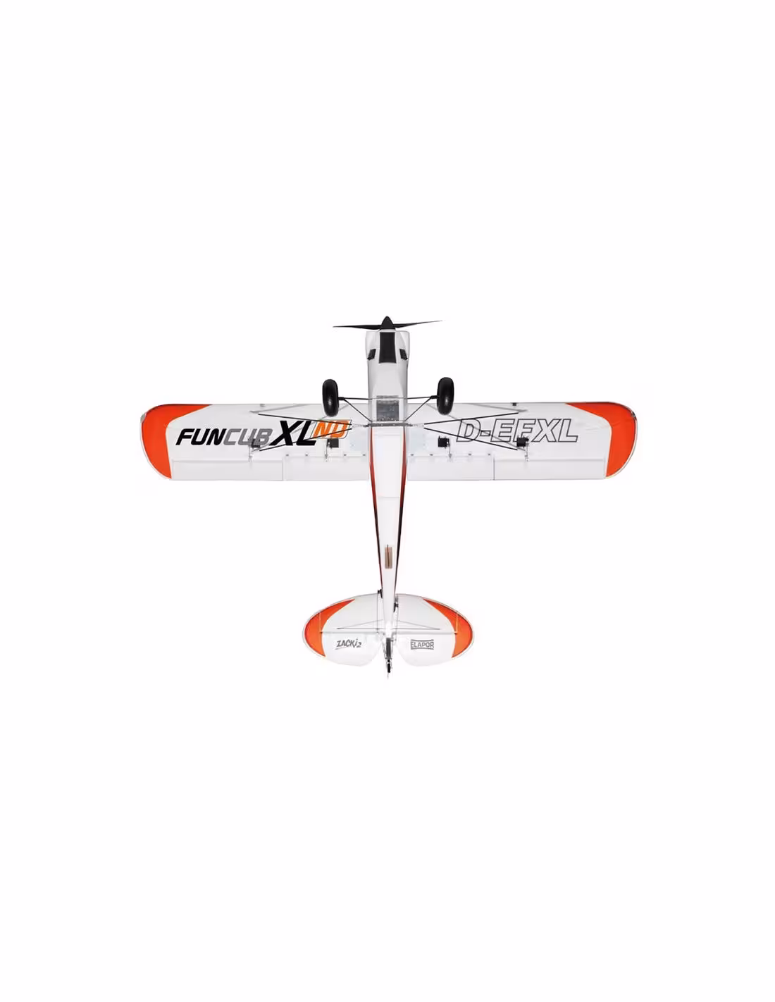 - Multiplex a dessiné un nouveau train d´atterrissage allégé avec des roues en EPP plus légères, ce qui fait que le poids du nouveau modèle est d’env. 200 g inférieur à celui du premier FunCub XL.. Par conséquent, les qualités de vol à basse vitesse sont améliorées, et le rapport poids/puissance est optimal.