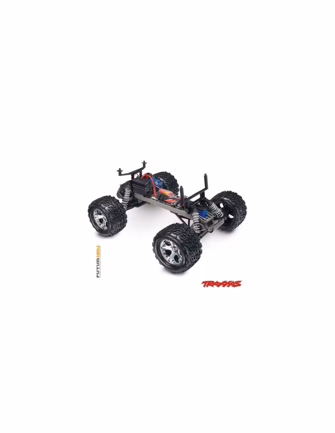 - Pour une prise en mains des plus faciles, Traxxas a équipé ce véhicule tout terrain d’un moteur Brushed Titan 12 tours à charbons sertis très linéaire, et doté d’une cage ventilée de type 550.