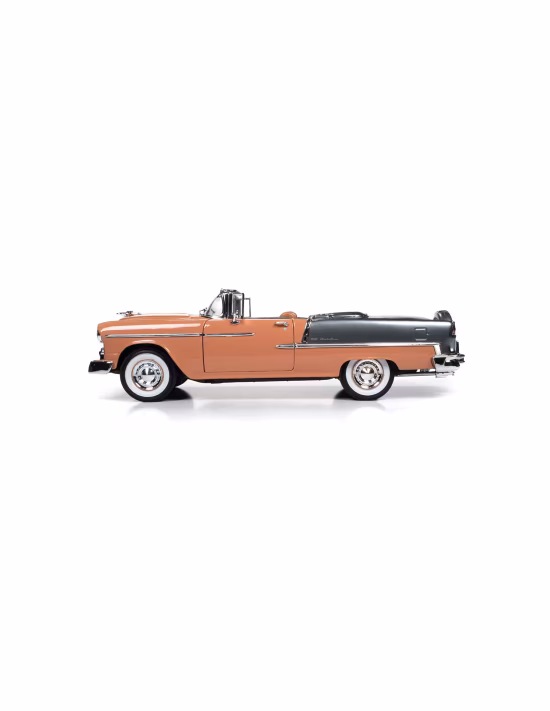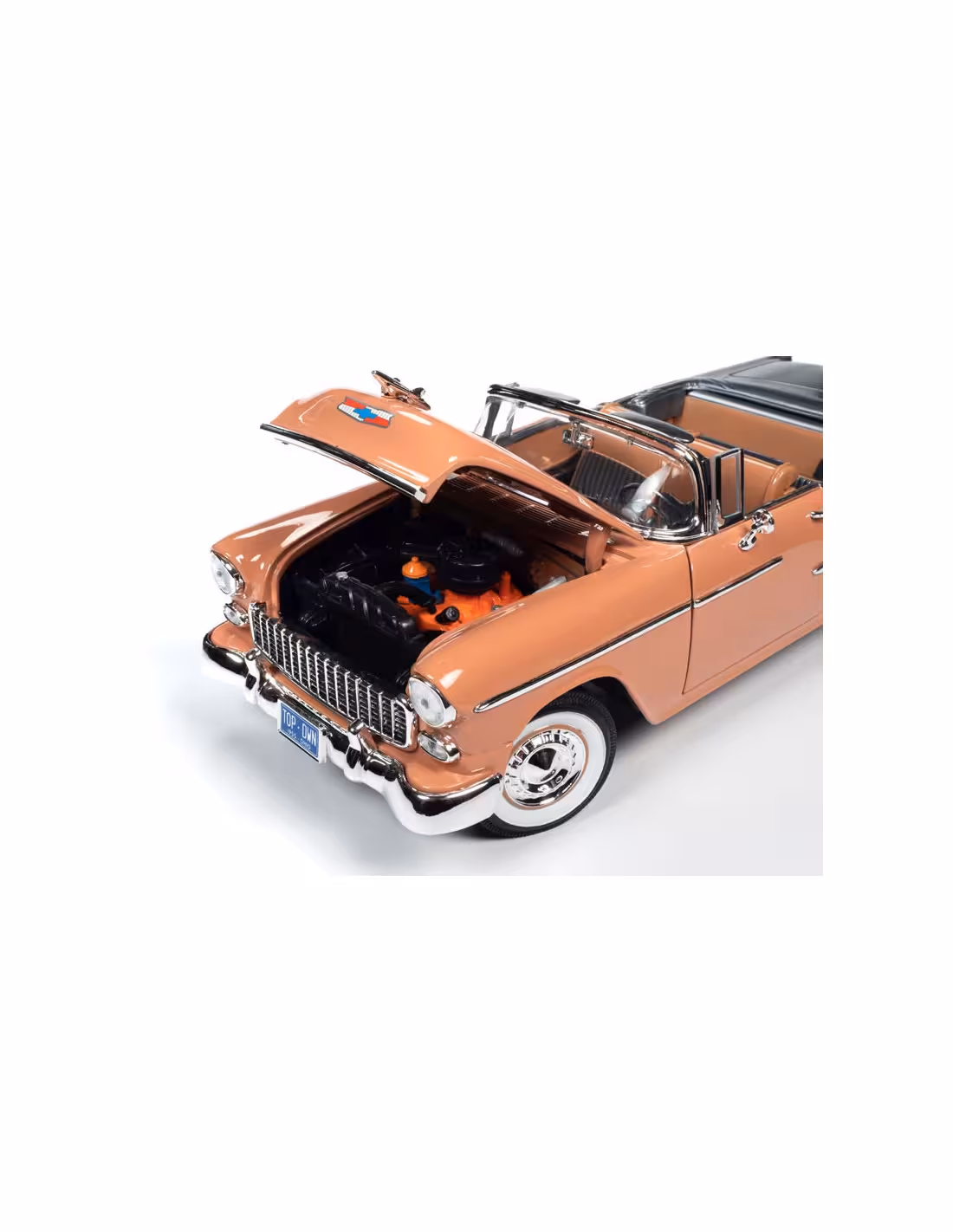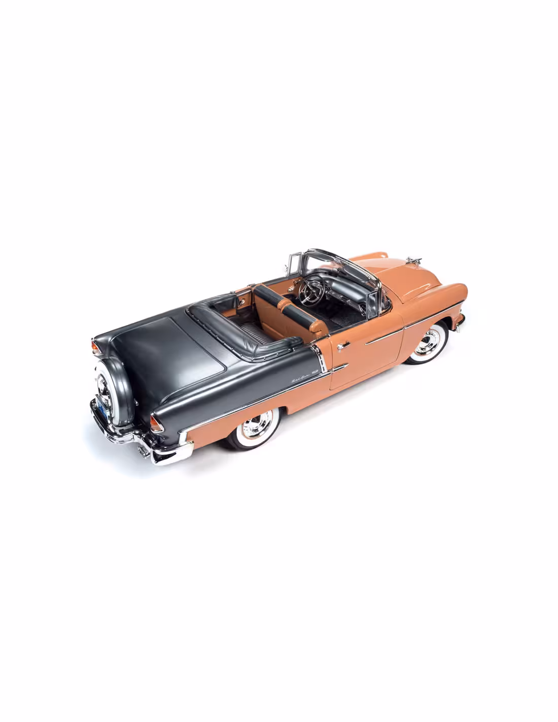 - L’héritage de la Tri-Five Chevy a commencé avec le développement de la Chevy 1955 entièrement redessinée, disponible en 150, 210 et haut de gamme Bel Air. Le joyau de la Tri-Fives était le tout nouveau moteur V8 265ci à compression élevée OHV, à course courte, boulonné dans un châssis à traction arrière. 1955 marque également l’année où Chevy adopte le style « boîte à chaussures » de ses voitures. le capot à bulbe arrondi et les panneaux latéraux des années précédentes. Au lieu de cela, des lignes plus plates et plus élancées ont balayé toute la longueur de la voiture vers le style arrière de la marque Cadillac de GM.