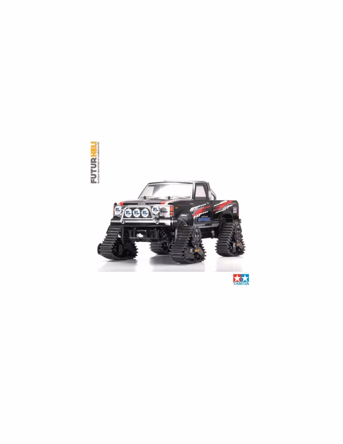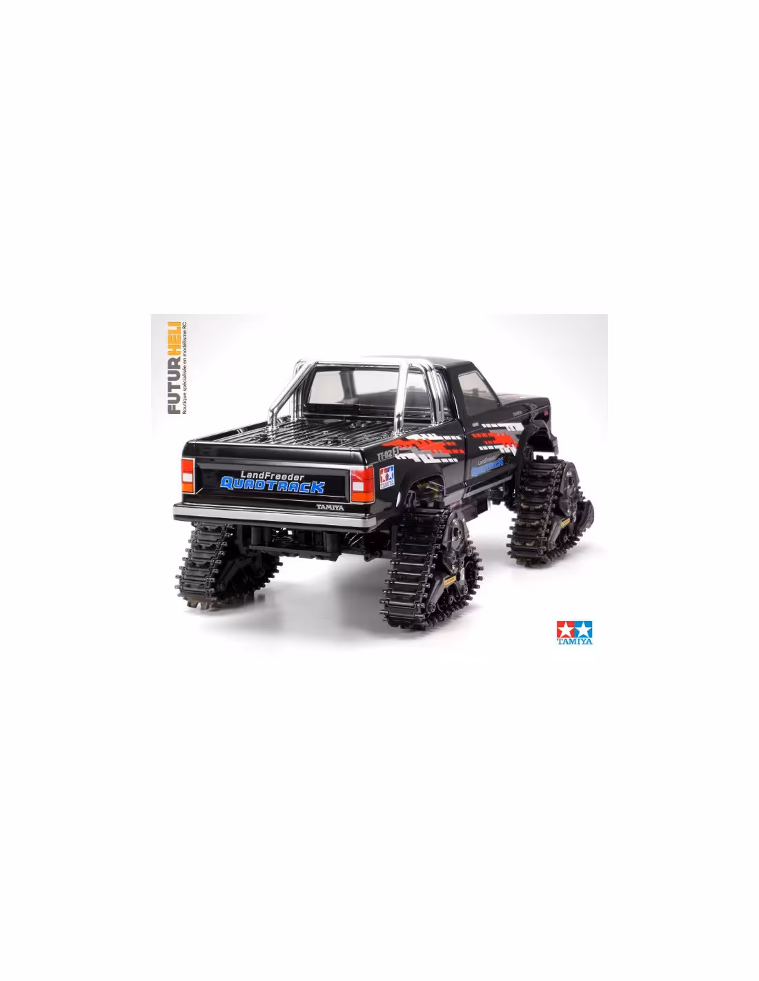 Tamiya Landfreeder Quadtrack TT02FT équipé de chenilles à la place des roues ce qui augmente ses possibilités de franchissement sur tout type de terrains. Il a été particulièrement étudié pour une stabilité parfaite garce à la répartition des masses , batterie et moteur en oposition. Un 4x4 haut de gamme avec un empattement réglable et une garde au sol à 2 positions.