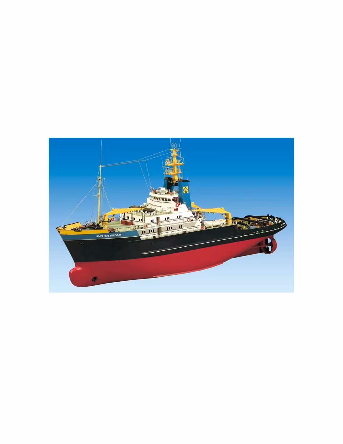 Kit à assembler du plus grand remorqueur du monde le Smit Rotterdam,Il est spécialement recommandé pour être équipé en radiocommande, avec propulsion par moteur électrique par 2 moteurs (non fournis). Construction tout bois par couples et lisses. Accastillage complet contenu dans le kit. Pour ensemble R/C 2 voies.