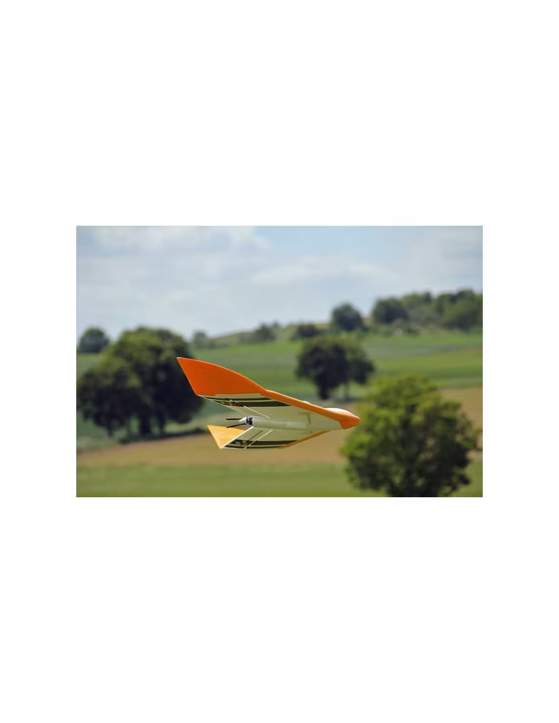 - Modèle en ELAPOR® avec clés d’ailes en fibre de carbone collées et un bord d’attaque robuste en EPP.