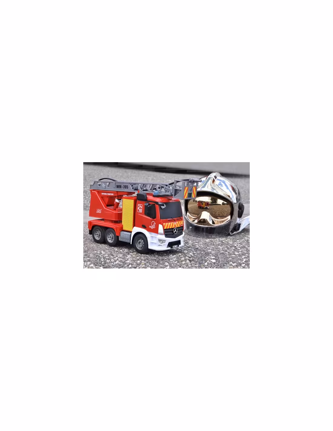 - Toutes les fonctions du camion et de la grande échelle opérables depuis l’émetteur : pas besoin de toucher le modèle pour profiter de toutes ses possibilités.