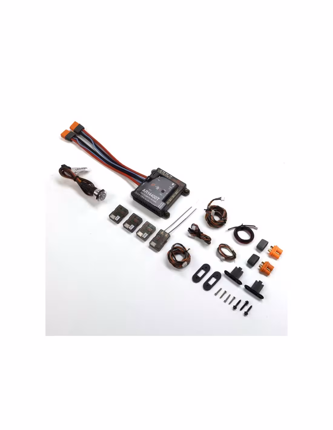 - Télémétrie intégrée avec des ports intégrés pour le RPM, la tension du pack de vol, les capteurs de température et le X-bus pour l'extension des capteurs de télémétrie.