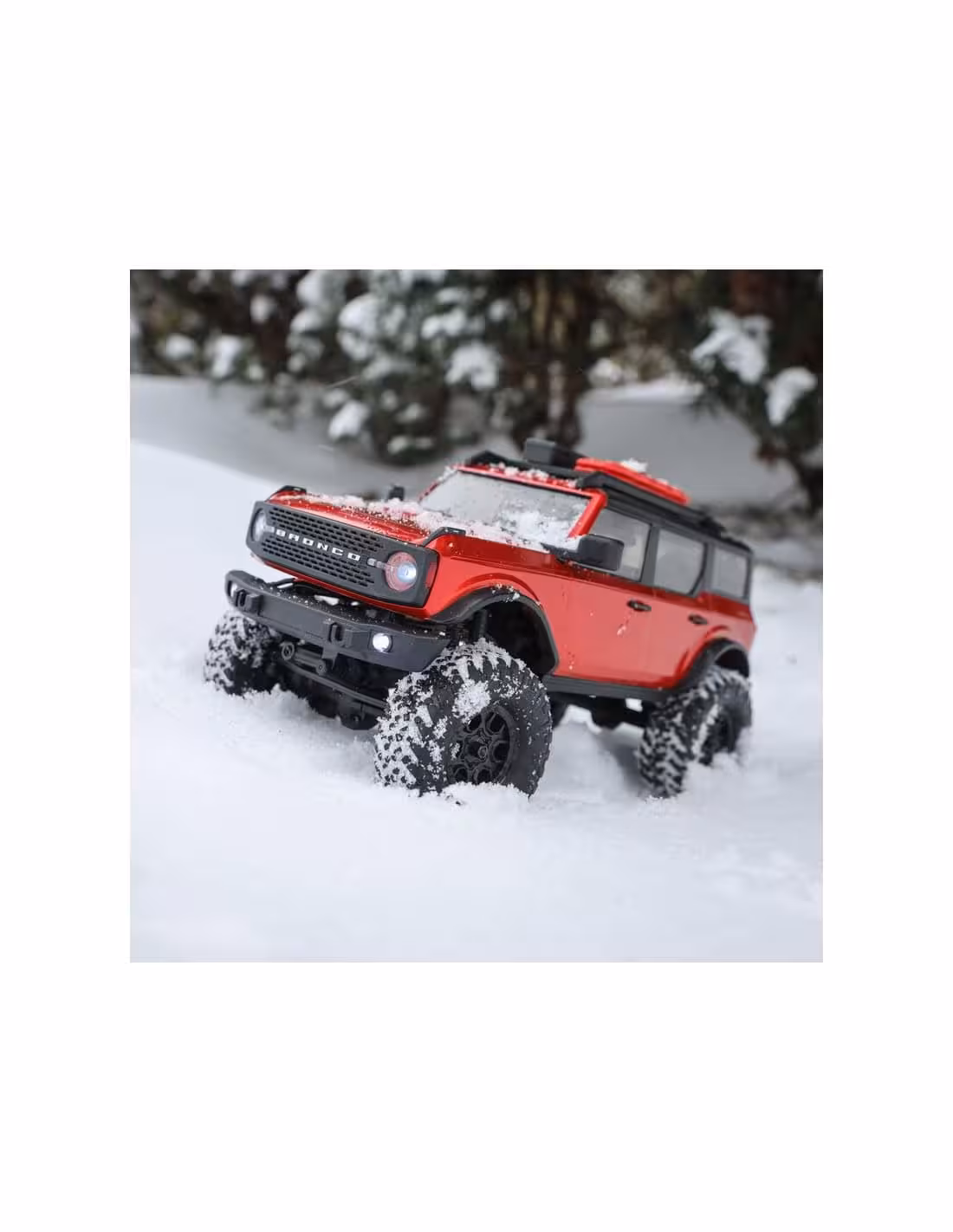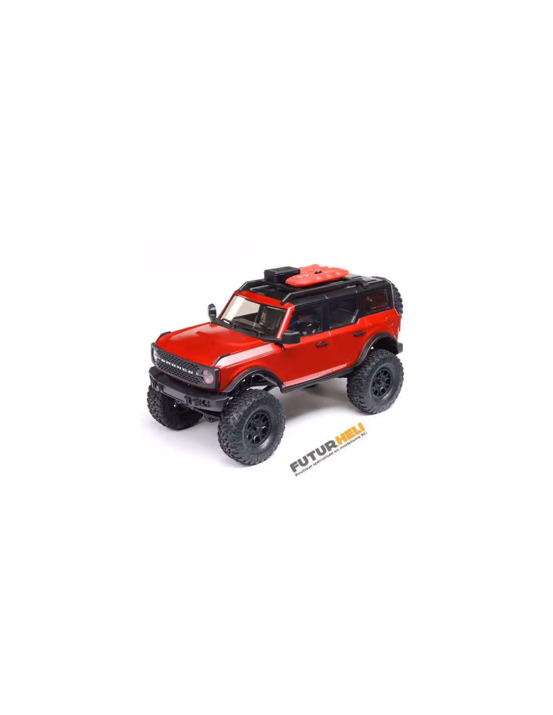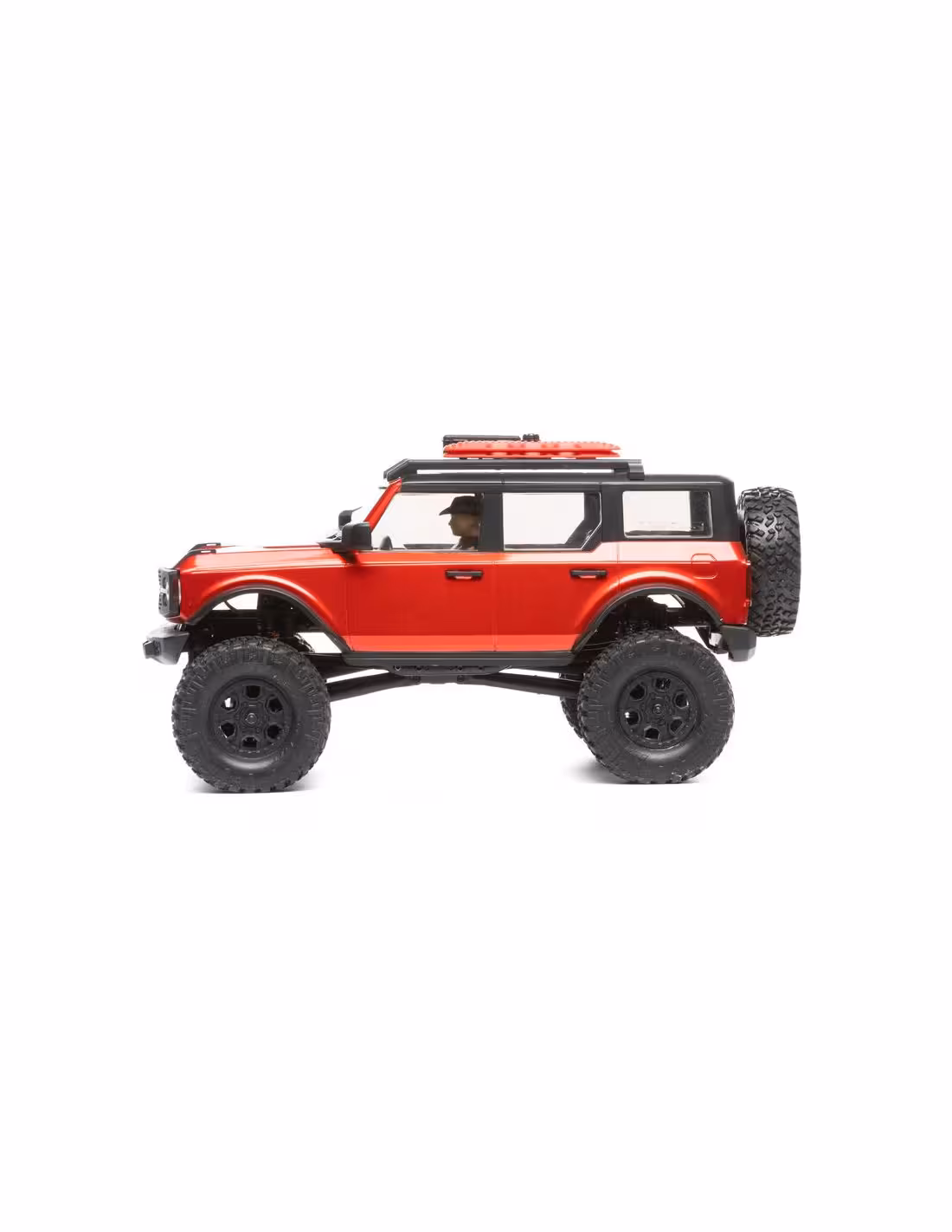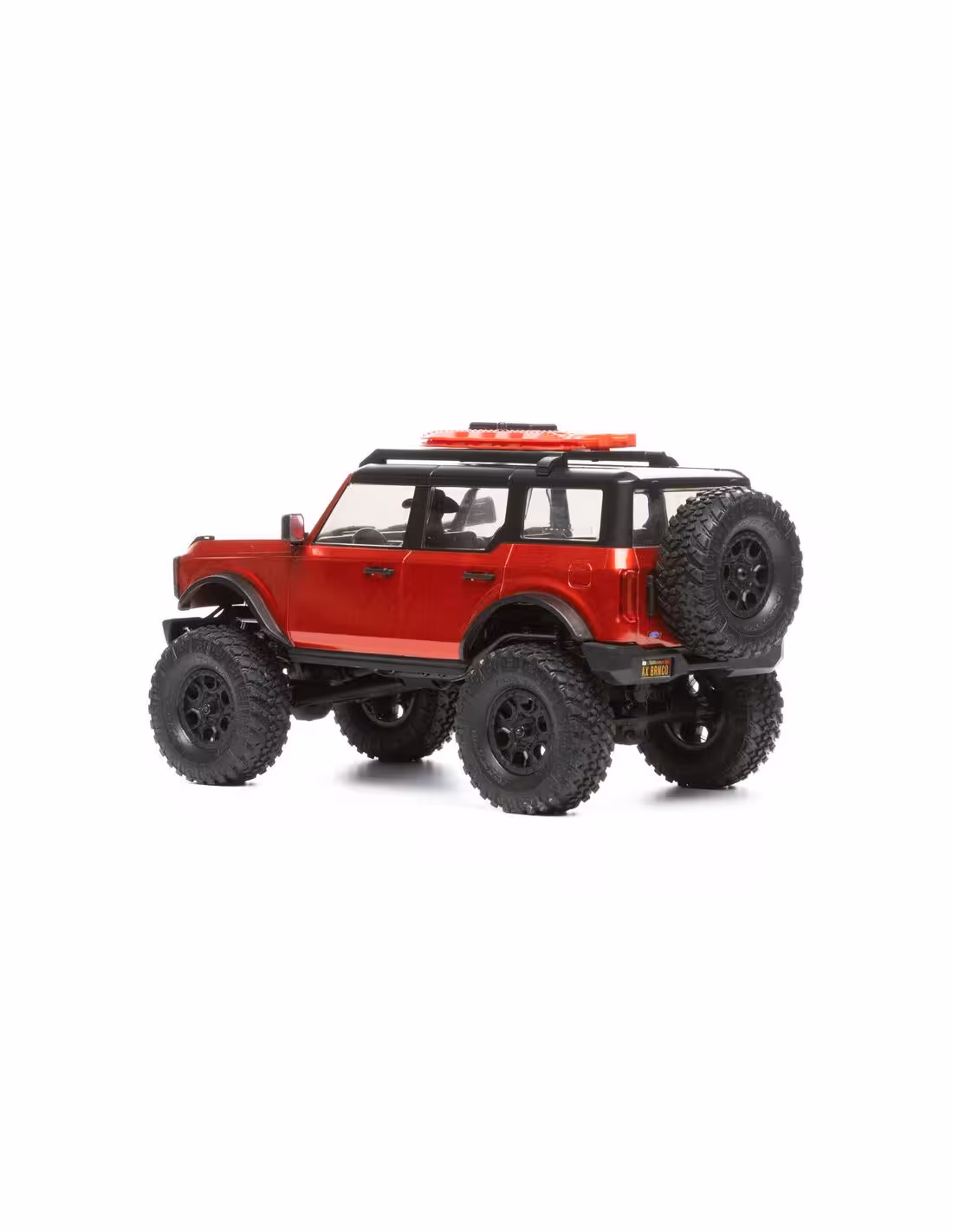 • Avec le Ford Bronco SCX24™, Axial® présente une carrosserie rigide en ABS exceptionnellement détaillée et extra-robuste, avec des poignées de porte, des rétroviseurs et des rails de toit moulés. Il y a également une roue de secours montée, plus une deuxième feuille de décalcomanie en bonus pour personnaliser la finition. Pour compléter les détails de la carrosserie du Ford Bronco à l'échelle, Axial® inclut des roues Wildtrak sous licence officielle et des pneus Nitto Trail Grappler M/T.