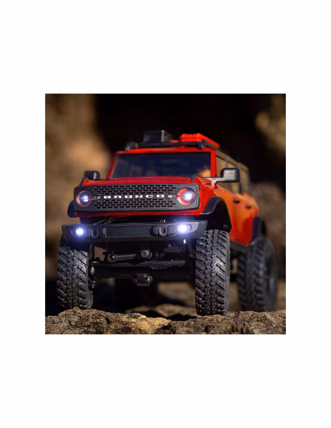 • Désormais, tous les passionnés d'automobile qui admirent le Bronco grandeur peuvent posséder et conduire leur propre version RC à l'échelle 1/24, sous licence officielle : le Axial® SCX24™ Ford Bronco 4WD RTR.