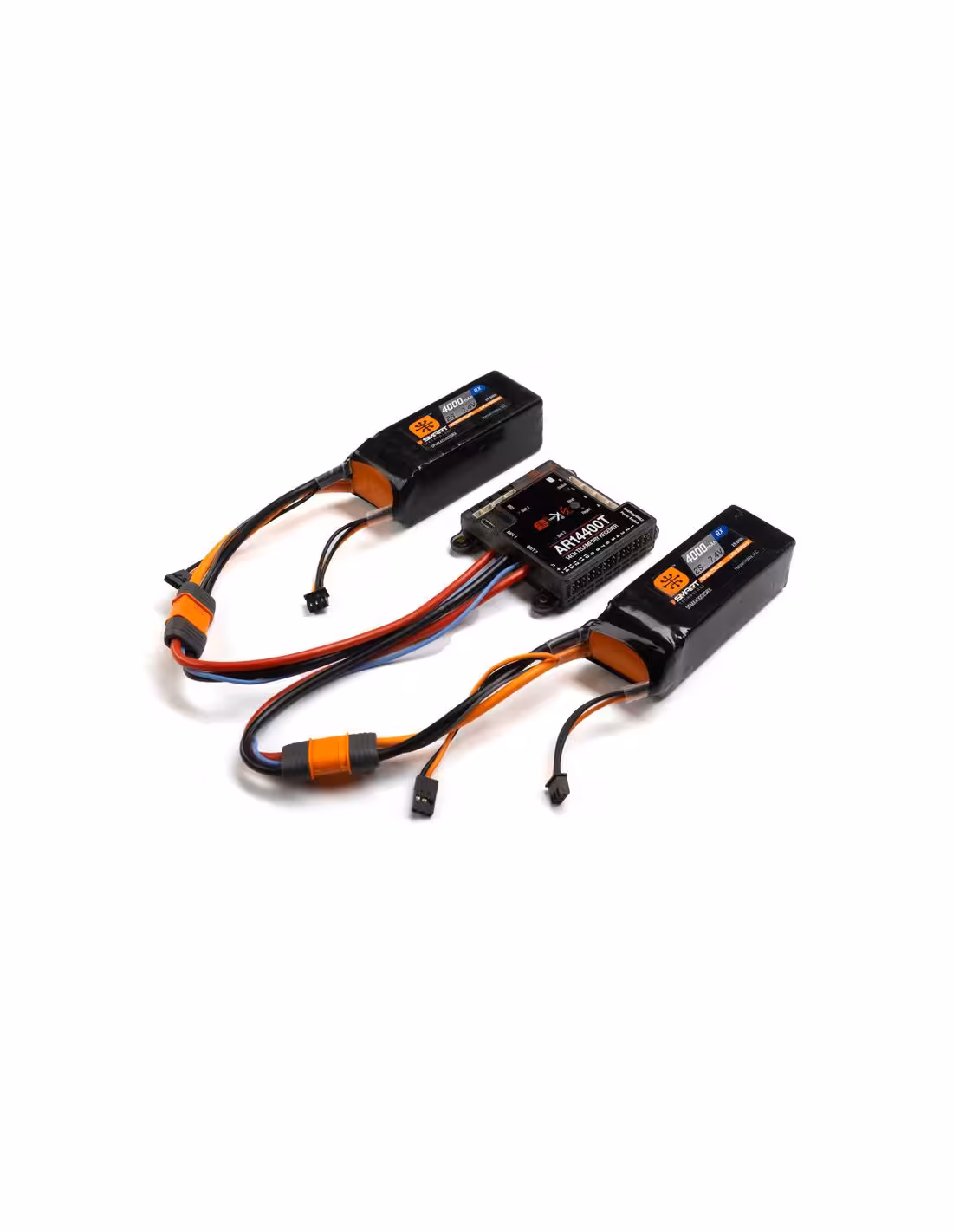 - Le récepteur AR14400T PowerSafe™ est doté de capteurs d'énergie de batterie intégrés, ce qui permet aux pilotes de mieux connaître la charge et le mAh utilisés par les servos, les rétracteurs, les lumières, etc. utilisés par chaque batterie.