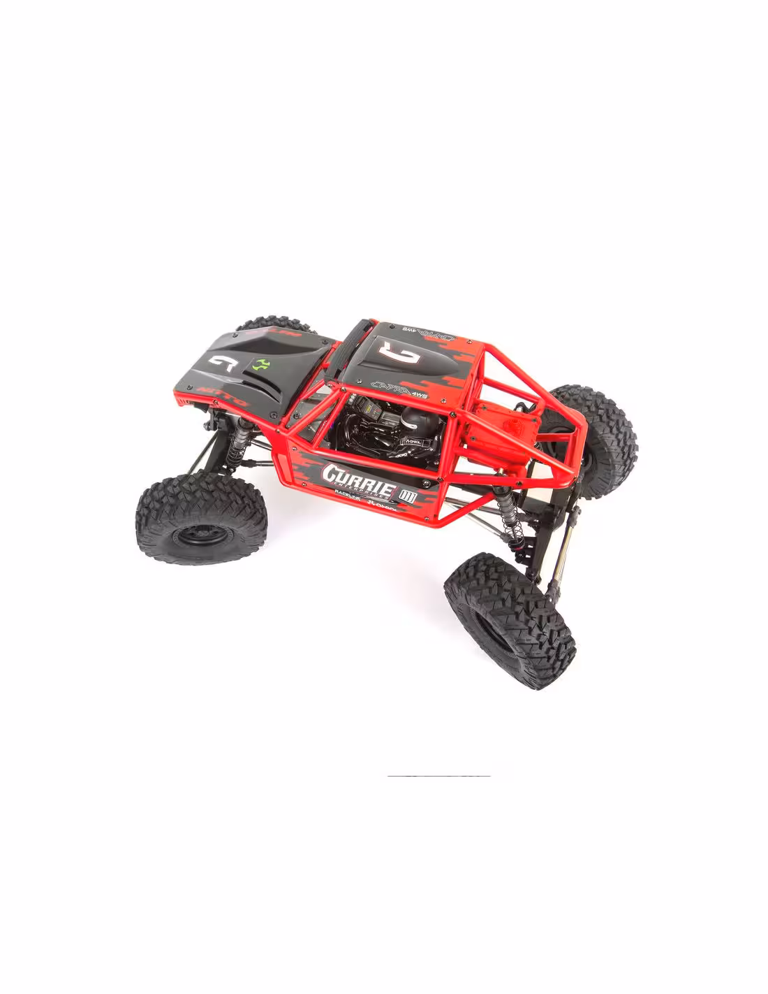 - Le châssis tubulaire du Capra™ 1.9 4WS Unlimited Trail Buggy offre un look réaliste de buggy à chenilles de roche à l'échelle et est optimisé pour la suspension et le dégagement des pneus. Les essieux Currie F9 Portal offrent plus de 45 % de direction avec une garde au sol supplémentaire. Les deux essieux sont équipés d'universaux en métal qui produisent une action douce pour une transmission efficace et durable. Tous les maillons et pivots de suspension sont fabriqués en acier inoxydable et fournissent des points de suspension précis et durables.