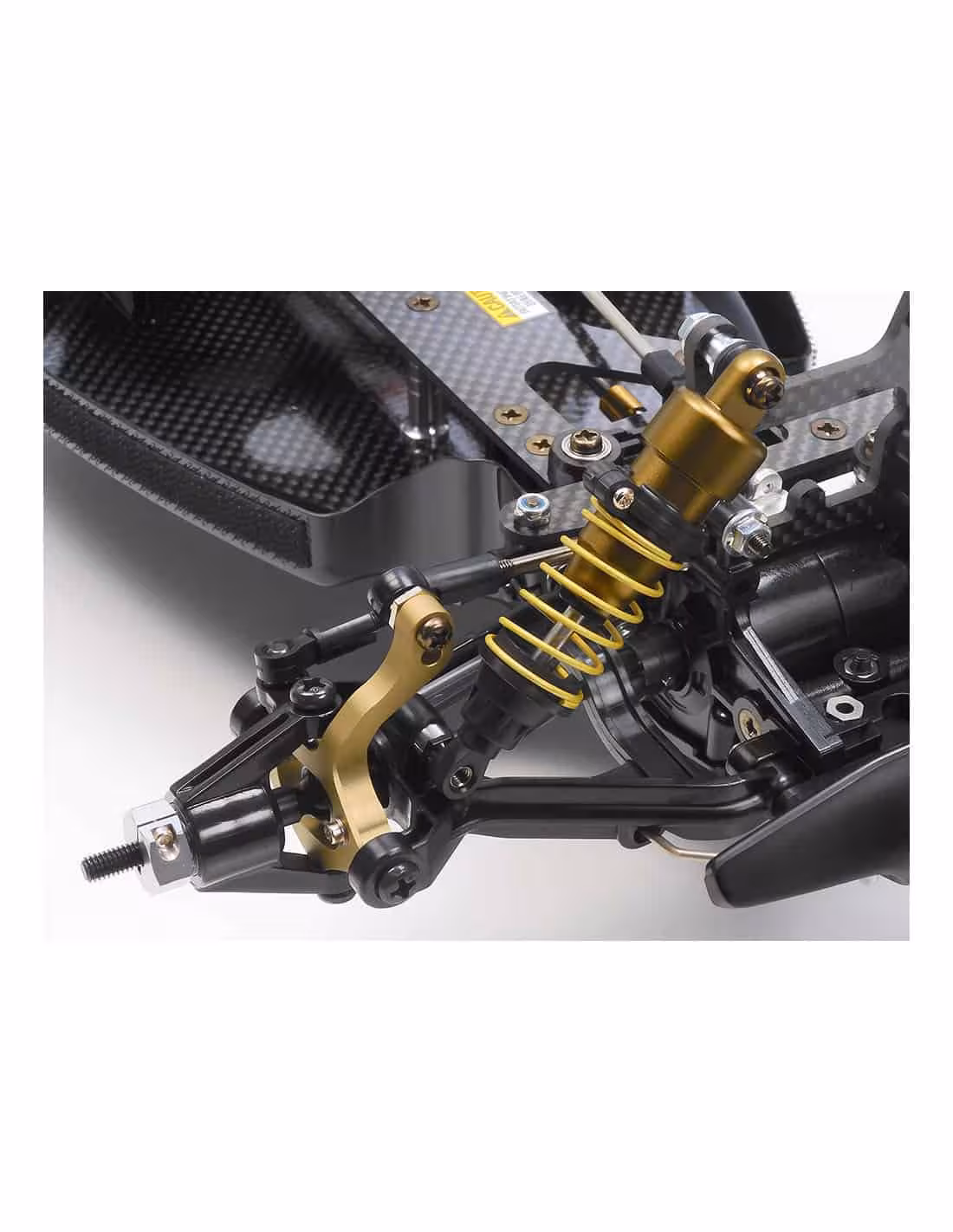 - Et pour correspondre à la couleur de la carrosserie, les amortisseurs avant et arrière et les montants avant ont été changés en alumite de titane foncé, et les roues à 6 branches sont coordonnées avec une couleur argentée qui serre vos pieds.