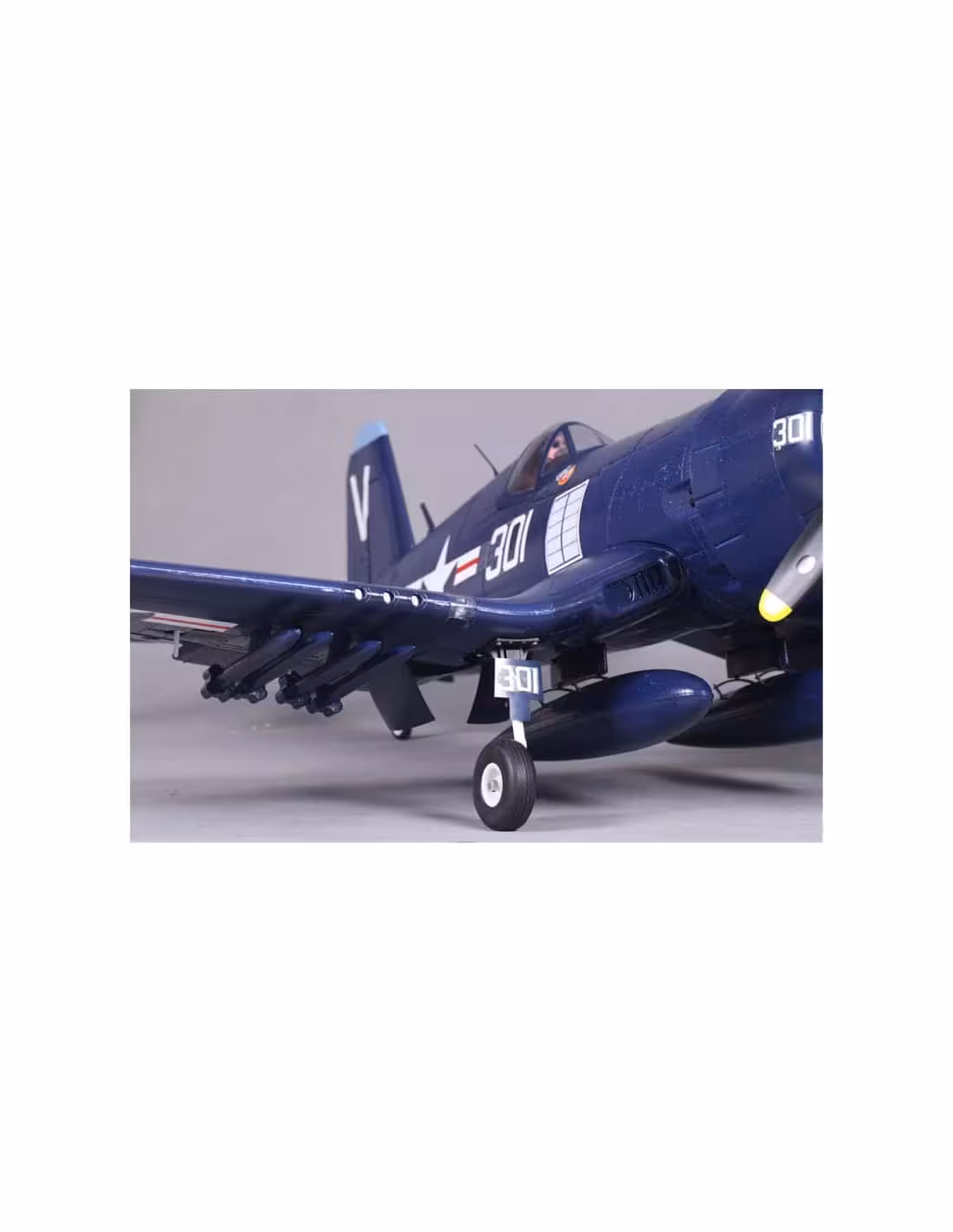 Le F4U-4 Corsair de FMS est un hommage à ce chasseur iconique qui est fabuleux à piloter. Doté de trains rentrants pivotant à 90°, de volets fractionnés et d'un moteur puissant entrainant une hélice quadripale 14 x 8", il offre tout ce qu'il faut pour se poser gentiment ou faire des passages rapides ou de la voltige coulée.