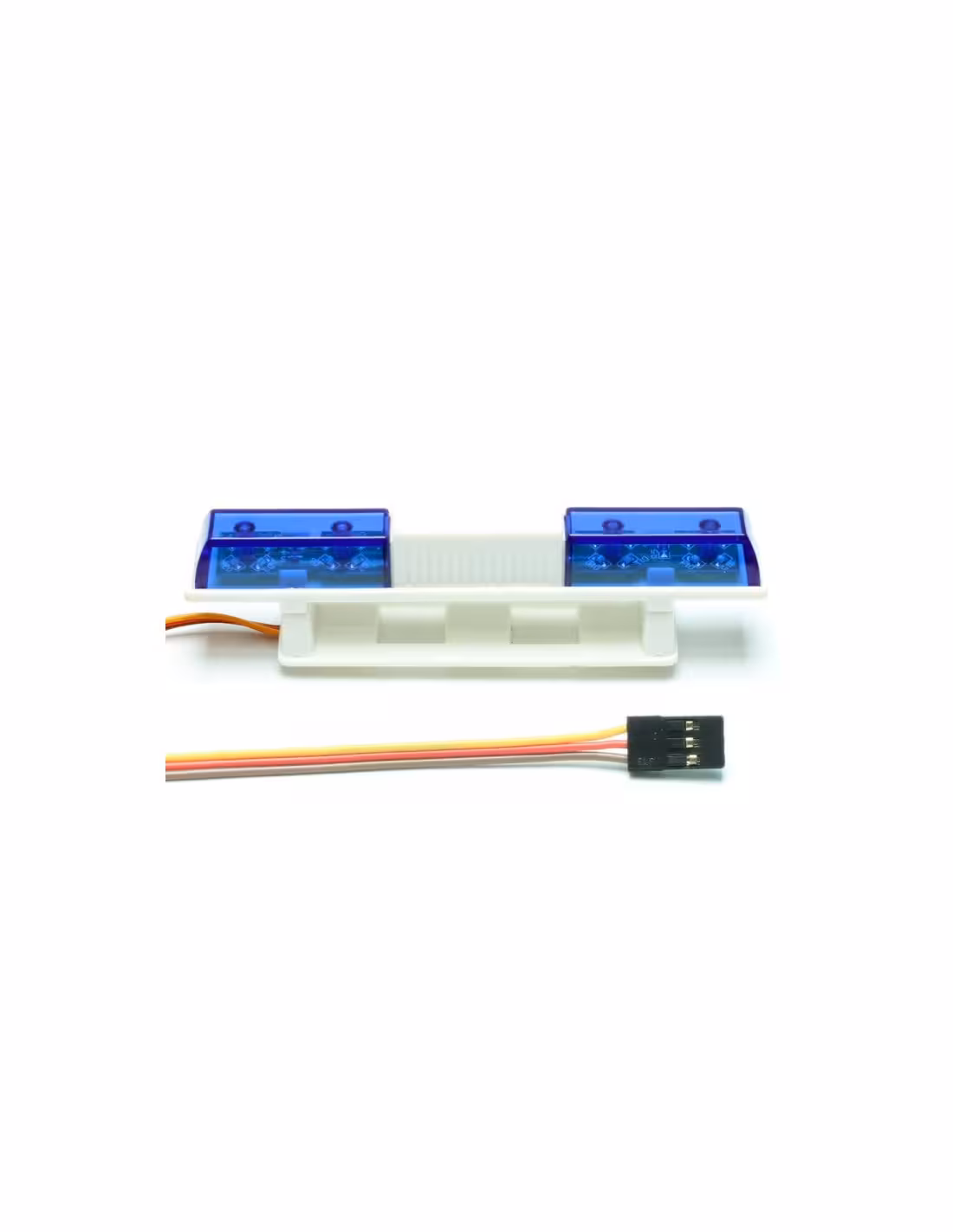 Unité d'éclairage Police Bleu prête à brancher , différente possibilité d'éclairage réglables. Fixation simple, par exemple avec du ruban adhésif double face.