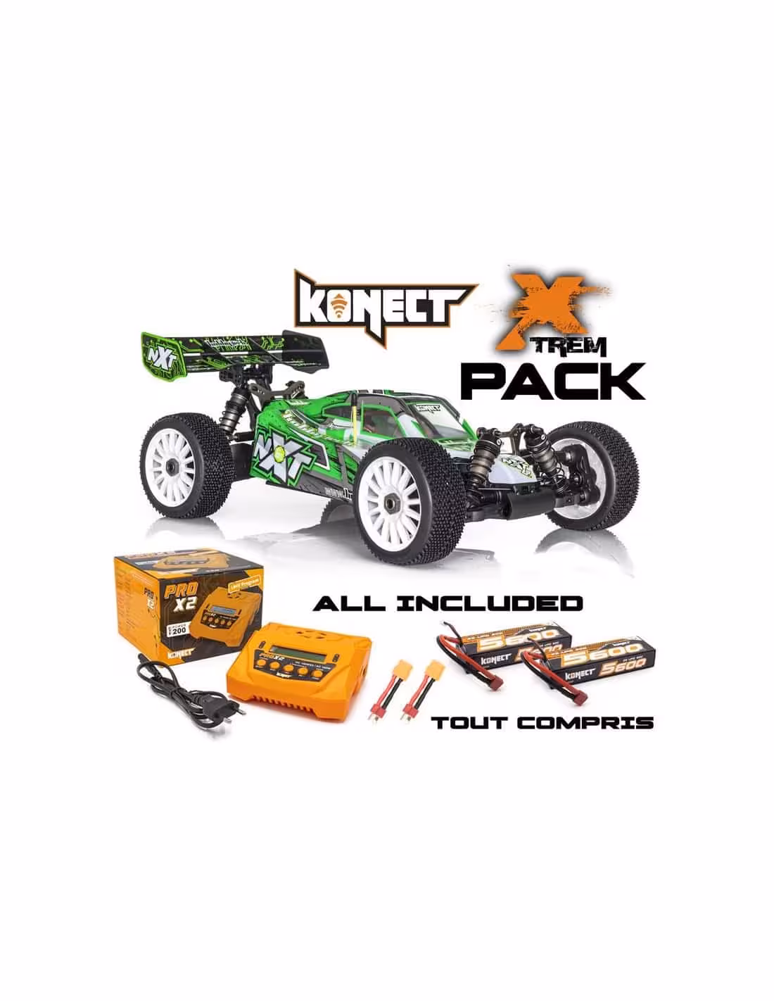 Retrouvez avec la spirit NTX de chez Hobbytech une marque Française. , une voiture RC à l'echelle 1/8eme complète et bien équipée en 6S . elle possède tout ce dont vous avez besoin un moteur brushless puissant 2000 KV, 2 pack de batterie, un chargeur avec ses accessoires et une radio-commande .