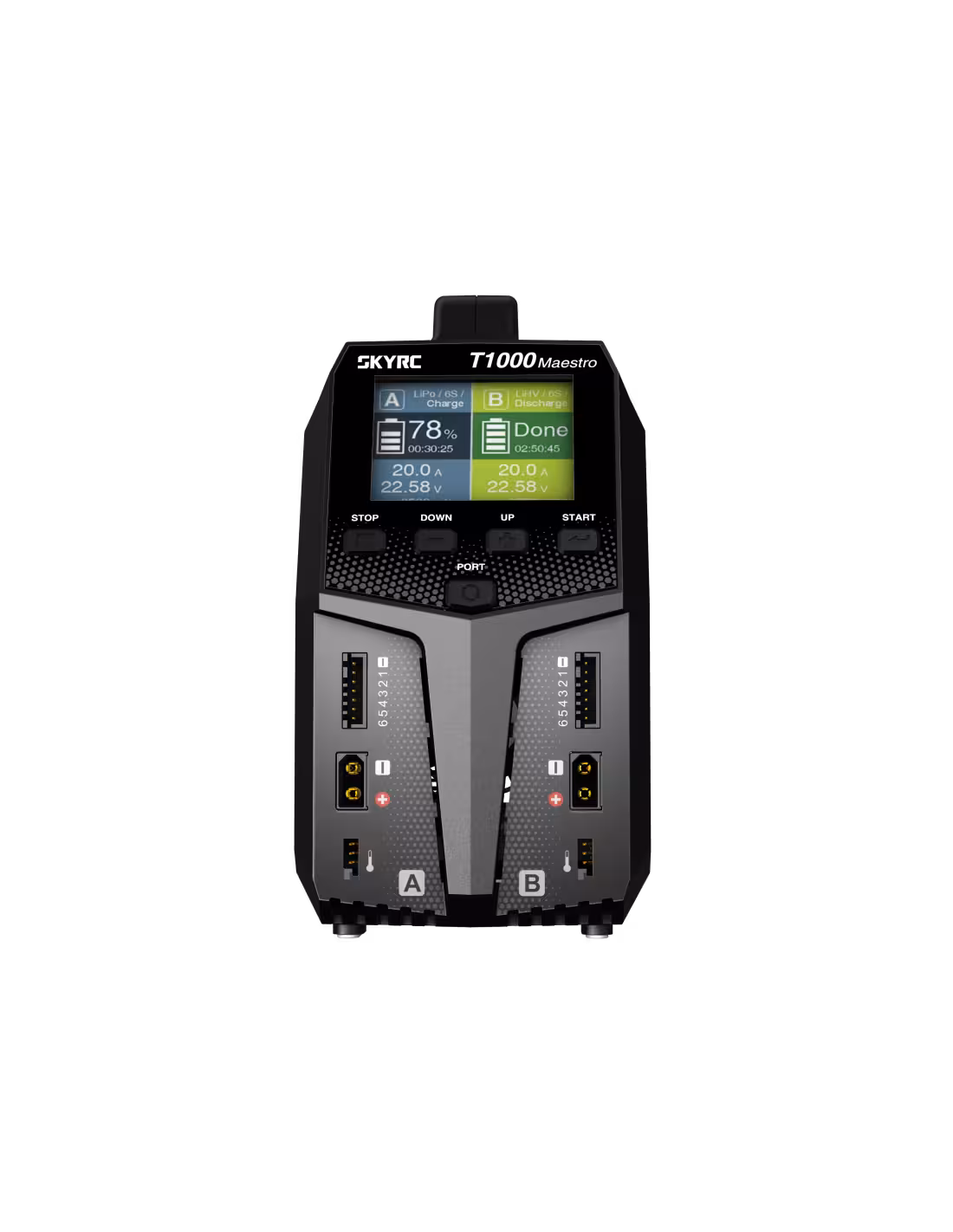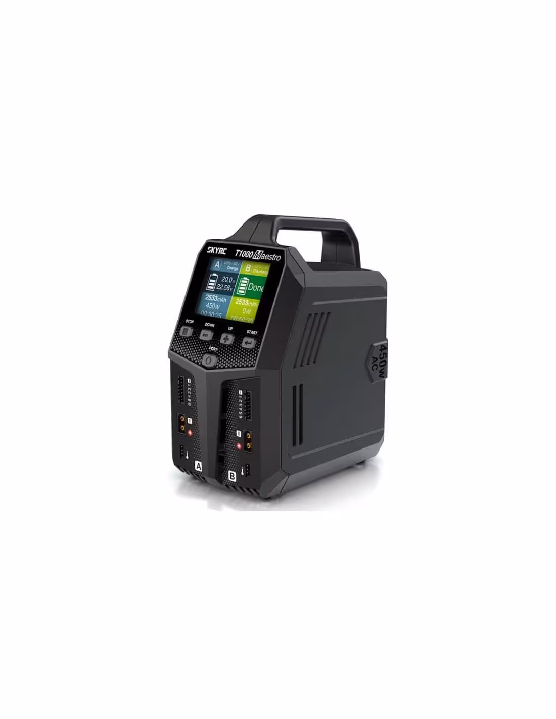 De La puisance avec le chargeur SkyRC T1000 Maestro.Poussez votre prochain "trip" de course RC au delà des limites avec le SkyRC T1000.La puce Arm Cortex-M4 fait entrer le T1000 avec sa double sortie, dans une autre dimension avec un protocol DSP inclus, le coeur de la puce contient un FPU (floating point unit) qui accélère les opérations mathématiques de précision, et prend en charge toutes les instructions et tous les types de données ARM