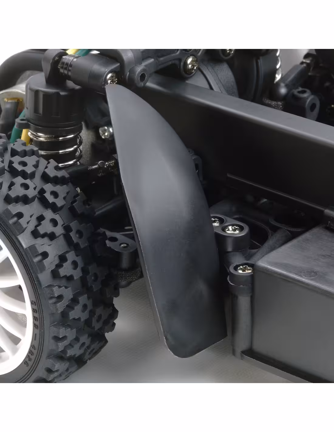 - Le châssis XV-01 offre une action de conduite R/C passionnante sur les surfaces goudronnées et de gravier. Il est doté d'une disposition 4 roues motrices à moteur avant et à entraînement par courroie avec les boîtes de vitesses, la courroie d'entraînement, la batterie et les zones de l'unité R/C protégées par des couvercles contre la saleté et les débris. Les trous dans le bas du châssis aident en outre à éliminer tous les débris qui parviennent à monter à bord pour assurer des performances hors route sans entrave. De plus, les revêtements de passage de roue amovibles aident à prévenir l'intrusion de boue et de gravier. Les différentiels à engrenages permettent une personnalisation avec différentes viscosités d'huiles différentielles.