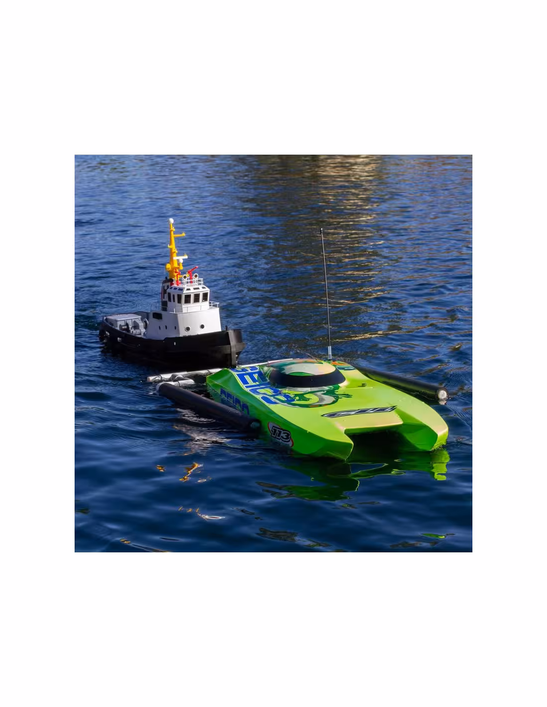 - Le Pro Boat®Horizon Harbour Tug Boat est un bateau à l'échelle qui vous permet de vous détendre et d'être le capitaine de votre propre navire ou de créer le bateau de récupération ultime. C'est à la fois un remorqueur à belle échelle pour naviguer autour de votre étang local et un bateau de récupération prêt à l'emploi pour le coureur chevronné. Doté d'un moteur de taille 700 et d'un ESC de 40 ampères capable de gérer jusqu'à 3 s LiPo, ce bateau peut être utilisé comme un remorqueur à l'échelle ou vous pouvez utiliser les bras amovibles pour transformer le remorqueur en un moteur de bateau et un récupérateur de travail jusqu'à 48- bateaux de course en pouces. De plus, il dispose d'une plomberie pour les canons à eau doubles qui deviendront opérationnels en ajoutant une pompe à eau qui sera alimentée par le récepteur. Lumières LED, un servo à engrenages en métal, radio 3 canaux 2.4Ghz,