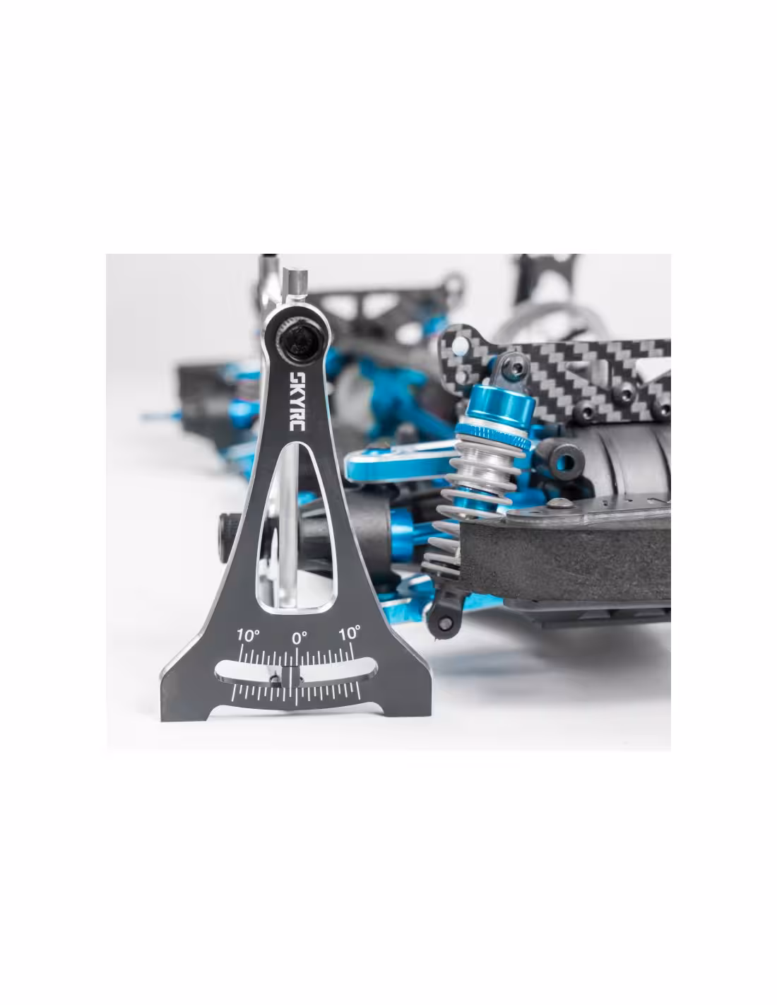 Opetenez une géométrie parfaite de votre voiture de piste avec le banc de réglage SkyRc livré avec un sac de rangement.