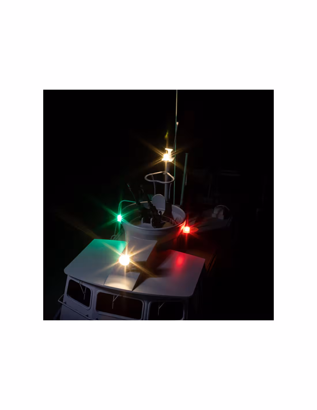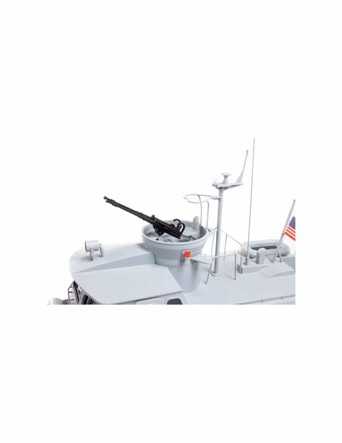 En plus des lumières, il y a beaucoup d'autres fidèles caractéristiques reproduites à l'échelle sur la coque moulée en ABS. Notamment, un canon de calibre .50 sur l'avant, des mitrailleuses M60 et un canon de .50mm sur le pont arrière, ainsi que des bouées de sauvetage, des pneus d'amarrage, des nacelles lumineuses, des antennes, des chaînes de rail et un drapeau. Excité à l'idée d'élever encore son niveau de finition ? Le PCF Mark I est prêt à être équipé en option d'une tourelle de mitrailleuse rotative (servo et émetteur personnalisé requis).