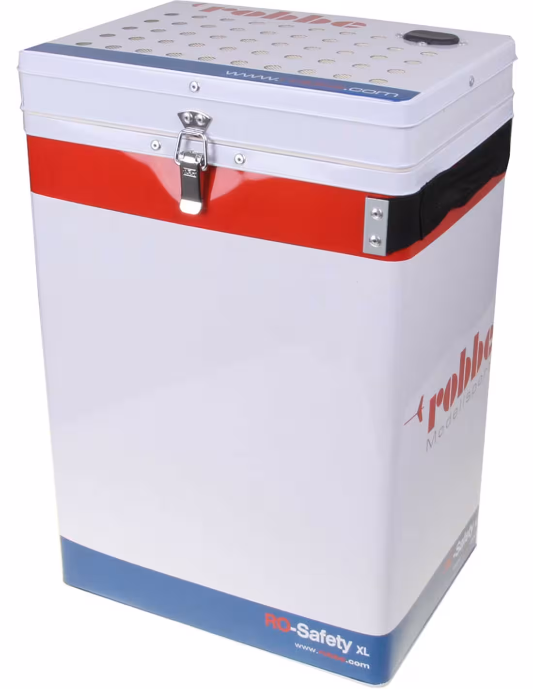 vous pouvez charger et stocker jusqu'à 6 équivalents 6S 5000 mAh (1100 Wh) en toute sécurité à l'intérieur du Ro-Safety Xl.Une protection efficace et sûre contre les incendies LiPo !