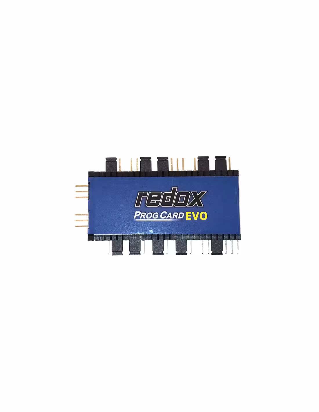 Carte de programmation Redox dédiée aux régulateurs de la série Redox EVO. Grâce à la description claire des fonctions programmables et aux cavaliers facilement reconnectables, il vous permettra de programmer rapidement une fonction donnée dans le contrôleur, sans avoir besoin d'entrer dans le mode de programmation (où les options sont définies en fonction de la touche sonore à l'aide de la manette des gaz bâton). De plus, la carte permet des réglages plus précis de certaines options, comme le réglage de l'accélération ou la sélection de l'angle exact de calage.