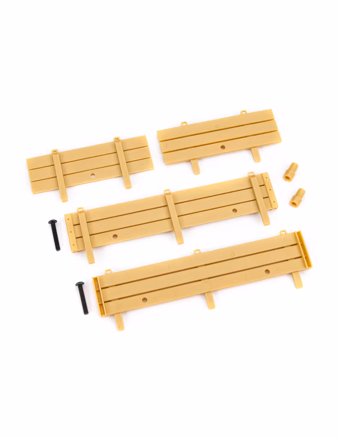Les panneaux latéraux à piquets sont un excellent moyen d'augmenter la capacité de transport de votre remorque Traxxas, avec un look amusant et authentique. Les côtés du piquet sont moulés avec un grain de bois texturé réaliste et des trous pour fixer les roues de rechange de la remorque (vendues séparément).