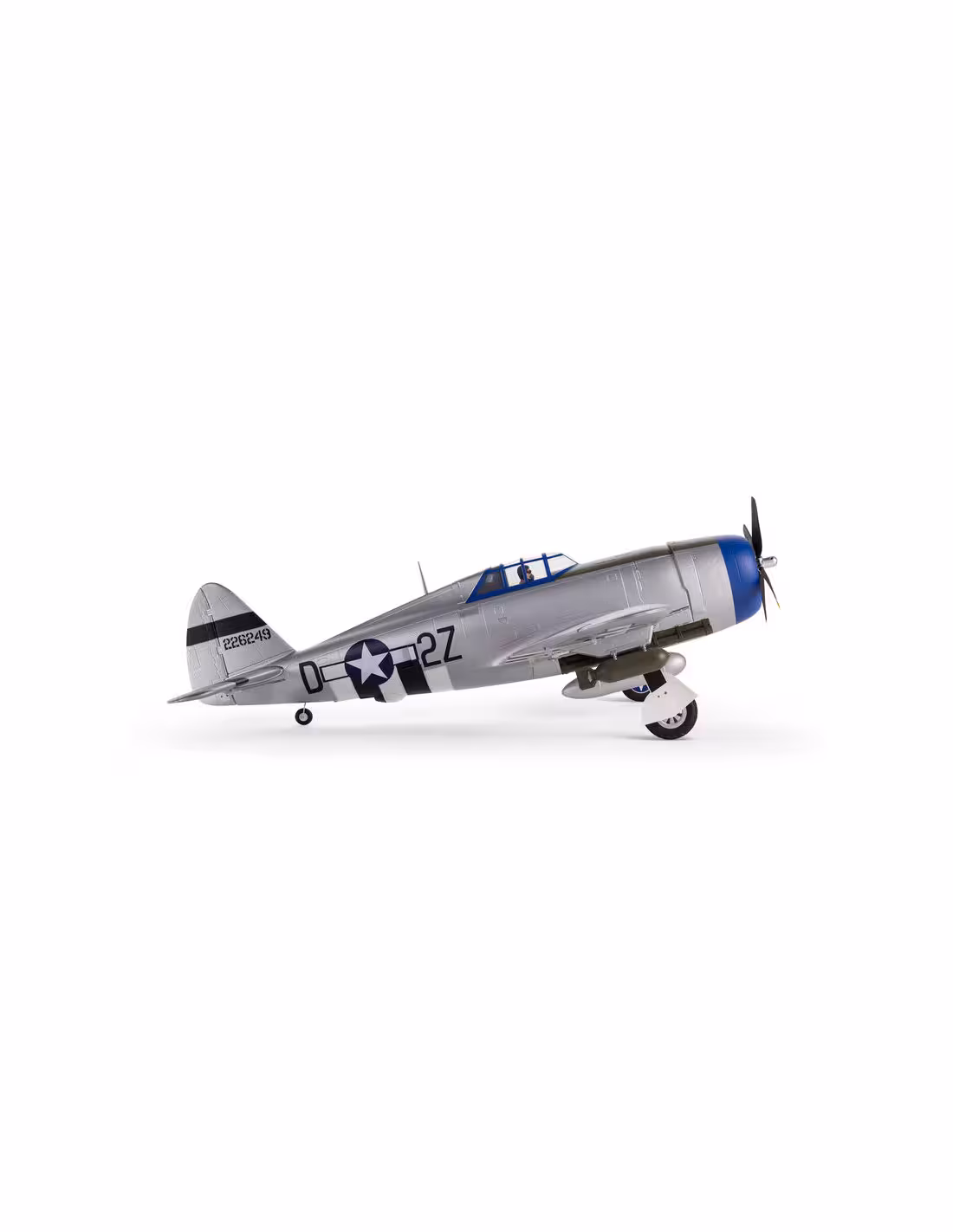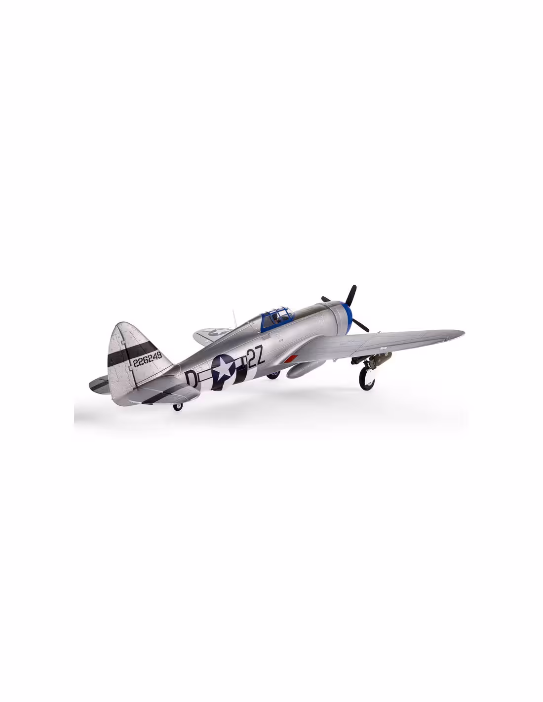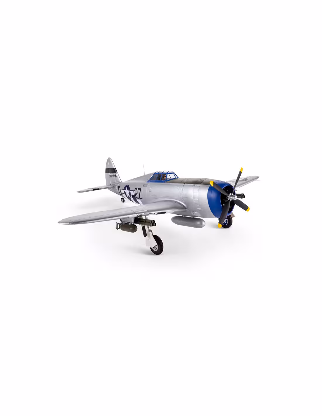 - Le E-flite ® P-47 Razorback 1,2 m a été mis à jour et amélioré pour être le modèle réduit le plus intelligent et le plus facile à piloter du populaire P-47 à ce jour ! La cellule est finie selon un schéma basé sur un P-47 qui a volé avec le 510th Squadron, 405th Fighter Group pendant la Seconde Guerre mondiale, et elle présente une variété de détails à l'échelle, y compris des lignes de panneaux moulés, un réservoir de largage à usage facultatif et l'armement, une hélice à quatre pales et plus encore. De plus, ses volets fonctionnels et son train d'atterrissage rétractable ajoutent à l'expérience de vol à grande échelle. Le système d'alimentation compatible 3S et 4S comprend un ESC Spektrum ™ Avian ™ Smart Lite amélioré de 70 A, et la version BNF ® Basic est équipée d'un récepteur AR631 pour fournir des données de télémétrie en temps réel avec AS3X ®et les technologies SAFE ® Select à utilisation facultative . Aucune colle n'est nécessaire pour l'assemblage final, vous pouvez donc l'avoir prêt à voler en moins de temps qu'il n'en faut pour charger une batterie, et il est de taille pratique pour le stockage et le transport sans démontage - ou l'aile monobloc est facile à retirer/installer. pour un transport et un stockage encore plus faciles. Et tout cela s'ajoute pour offrir des fonctionnalités, une maniabilité et des performances qui en font un excellent choix pour les pilotes intermédiaires et débutants jusqu'aux pilotes expérimentés !
