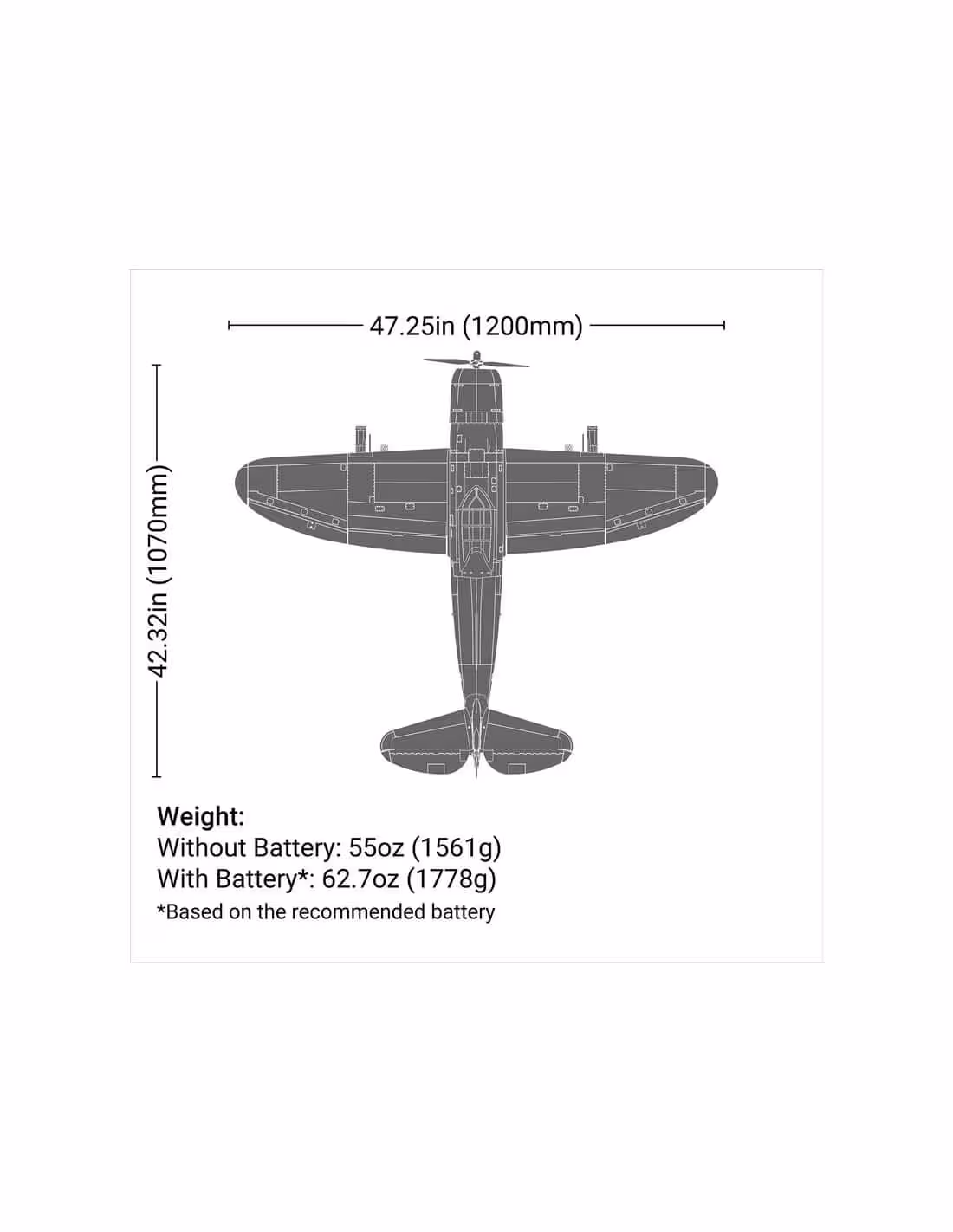 - Mise à jour et mise à niveau pour être le modèle P-47 "full-house" le plus facile à piloter à ce jour, capable de voler à l'échelle, sportive, à grande vitesse et acrobatique