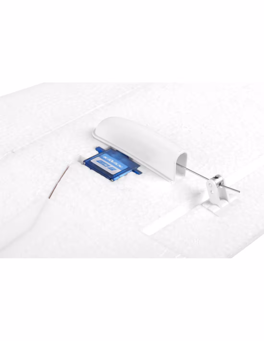 - Le fuselage en mousse EPO est livré avec le moteur brushless C2814-1400 dans le pylône, l'hélice repliable 7x6", le KAVAN R-20B ESC et les servos de profondeur et de gouvernail GO-09 installés. L'auvent amovible est sécurisé par un verrou magnétique. La prise d'air de refroidissement à l'avant du pylône maintient le moteur bien au frais. L'aile EPO en deux parties est fournie avec deux servos d'ailerons GO-09 et leur tringlerie installée. Les moitiés d'aile sont reliées par un raccord de tube de carbone et fixées par des vis sur le côté inférieur de l'aile. L'empennage est également en mousse EPO ; la profondeur et le gouvernail sont contrôlés par une paire de poussoirs en fil de fer.