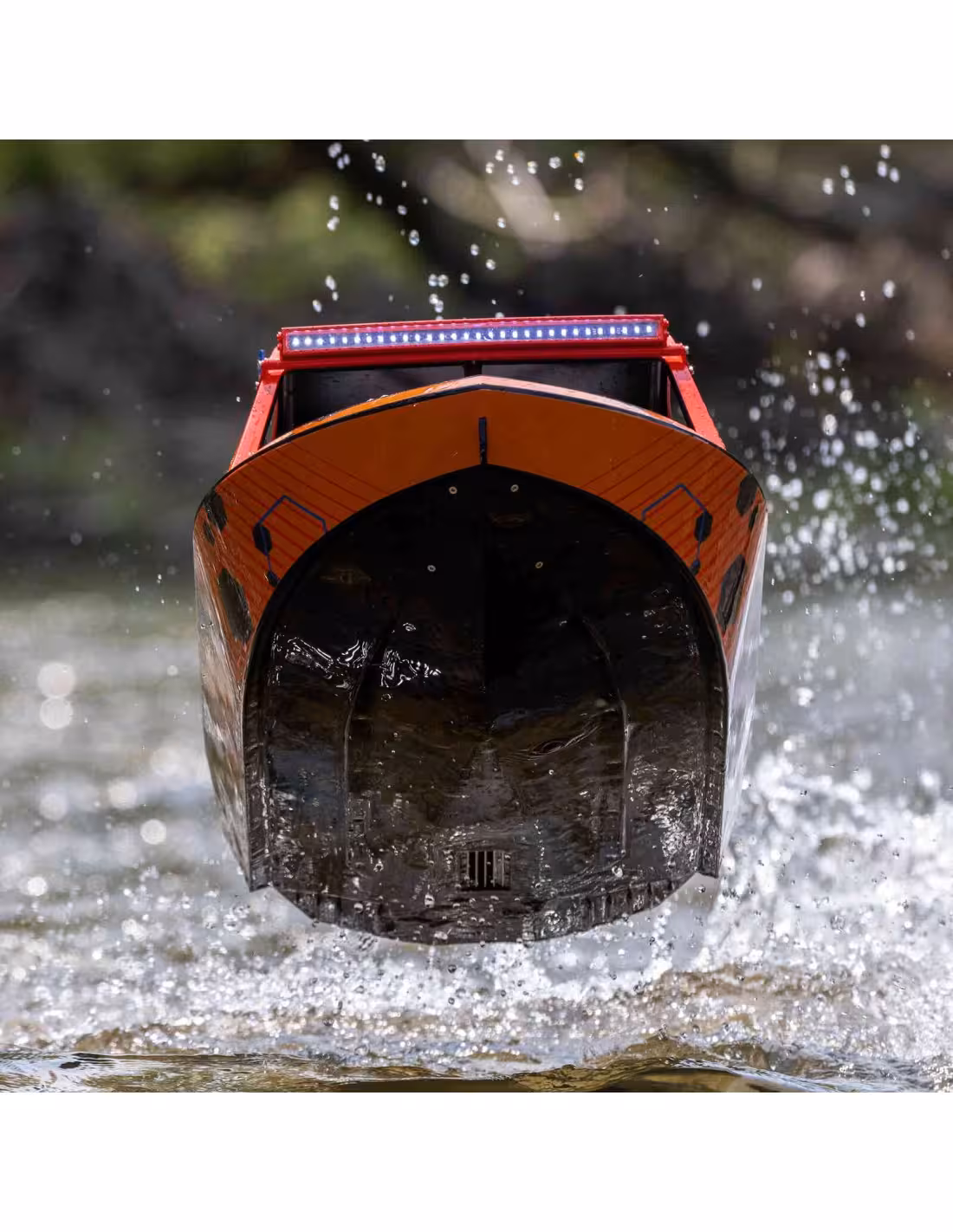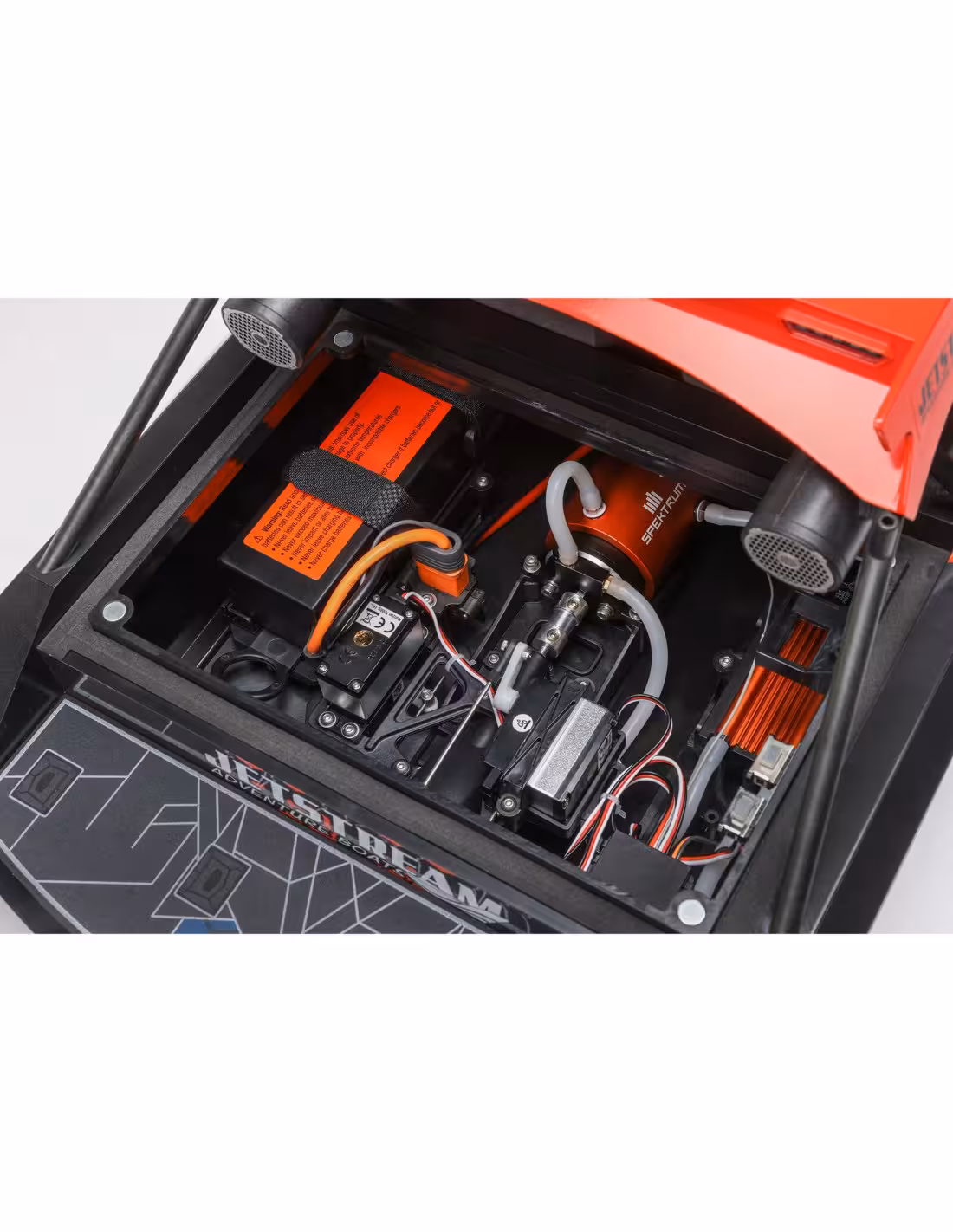 • De la proue à la poupe, le Jetstream de 24 pouces est conçu pour surpasser tout autre bateau RC qui oserait rivaliser. La porte inversée du système de propulsion par pompe à jet n'est qu'un exemple. Utilisez-le pour reculer votre Jetstream d'une remorque ou comme fonction de freinage rapide sur l'eau. C'est l'une des nombreuses caractéristiques qui capturent parfaitement l'aspect et la sensation que peut procurer un bateau à l'échelle 1.
