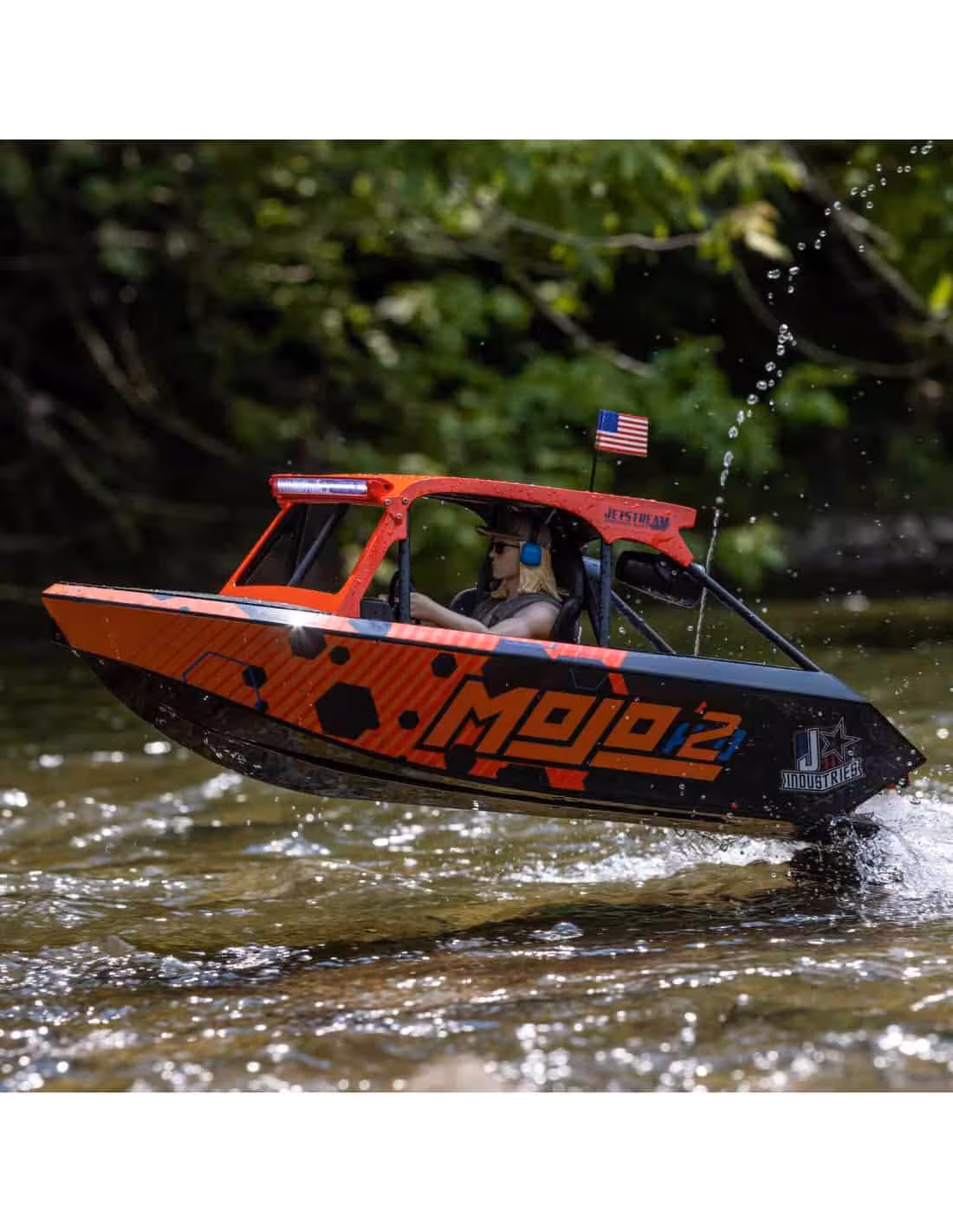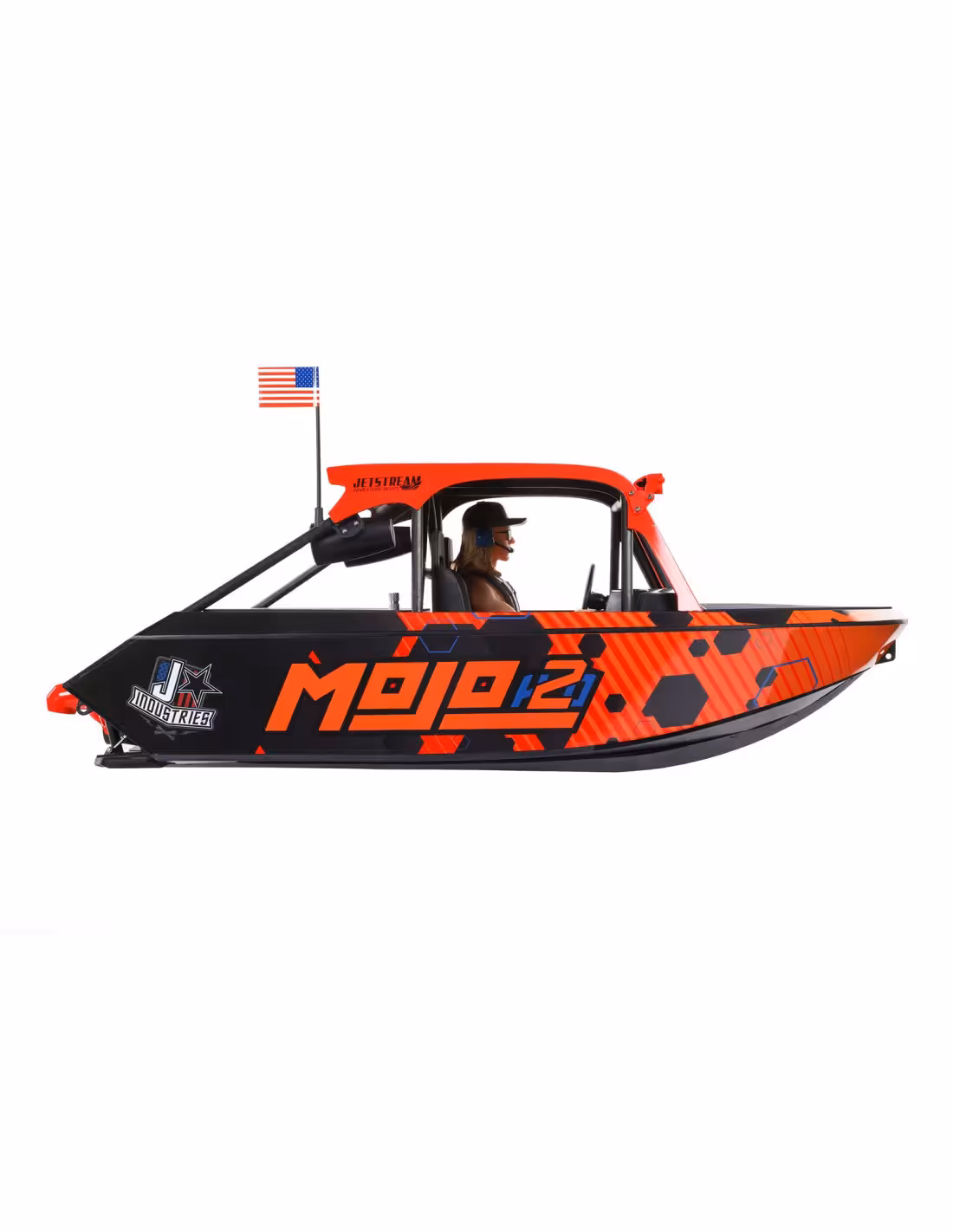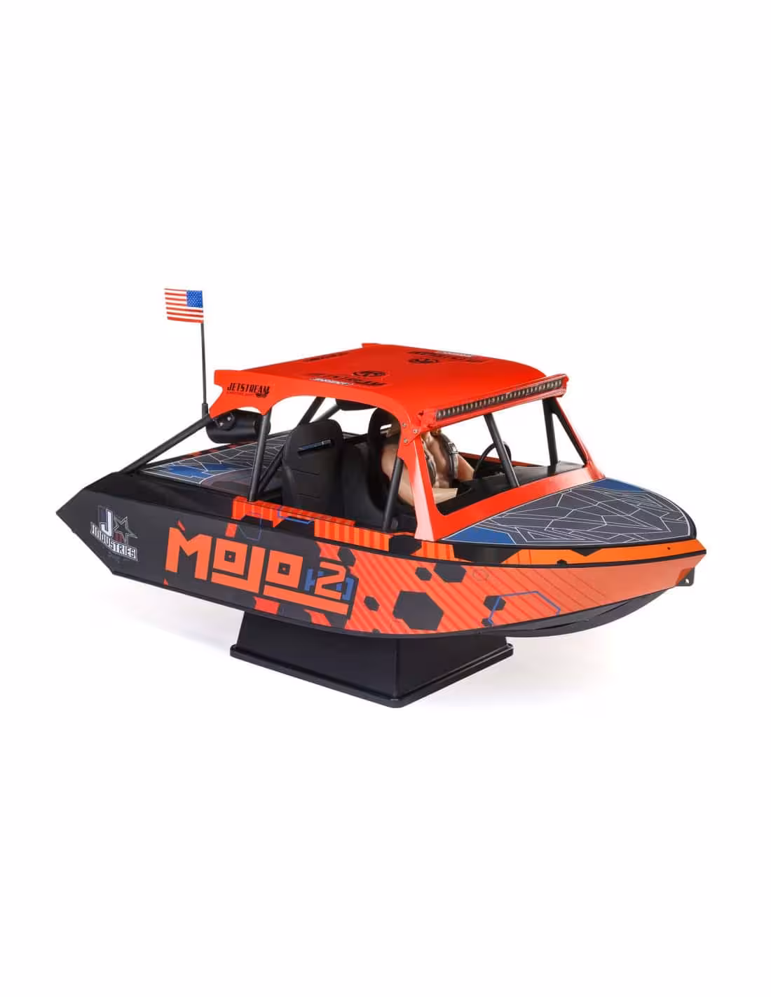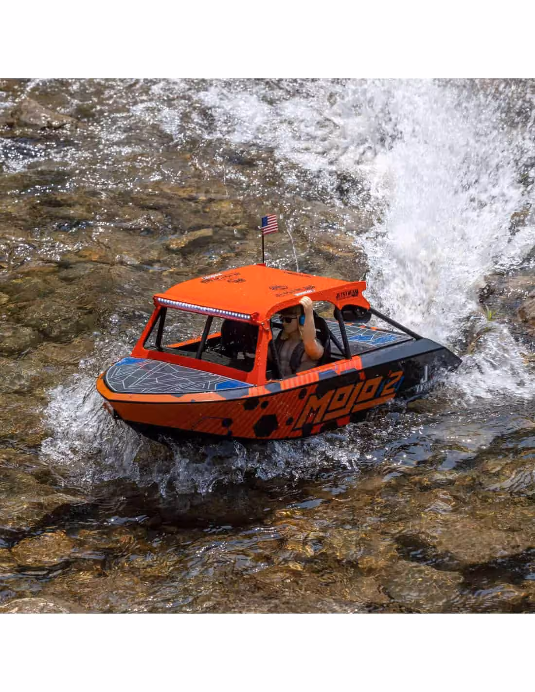• Choisissez parmi deux finitions sous licence officielle pour votre Jetstream. L'un reproduit l'impressionnant Blake Wilkey Death Boat. L'autre a les remarquables graphismes personnalisés de la livrée MoJo H2O. Découvrez tous les détails réalistes inclus avec les deux : arceau de sécurité, cockpit complet, volant, haut-parleurs simulés, et plus encore. Vous pouvez facilement allumer ou éteindre les barres d'éclairage LED avant et arrière et positionner la figurine du pilote (également inspirée de Blake Wilkey de Mini Boat Mafia) dans des poses décontractées ou de conduite. Tout cela donne à votre Jetstream l'apparence la plus radicale de la plaisance RC.