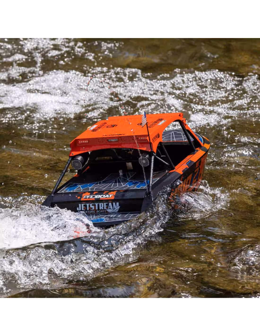 • Avec notre Jetstream RTR à l'échelle 1/6, Pro Boat apporte à la RC ce que les vrais kits apportent au jet boat grandeur nature- la liberté de l'utiliser presque n'importe où et l'excitation de toujours s'éclater. Il s'agit du premier bateau à réaction RC construit pour le bashing. Il est destiné à évoluer dans des eaux agitées, que ce soit à deux pouces ou à deux cents pieds de profondeur. Affrontez les eaux vives, les ruisseaux et les sauts. Vous êtes prêt à tout avec le bateau RC le plus radical de la planète !