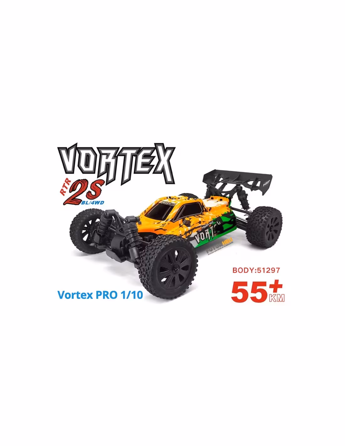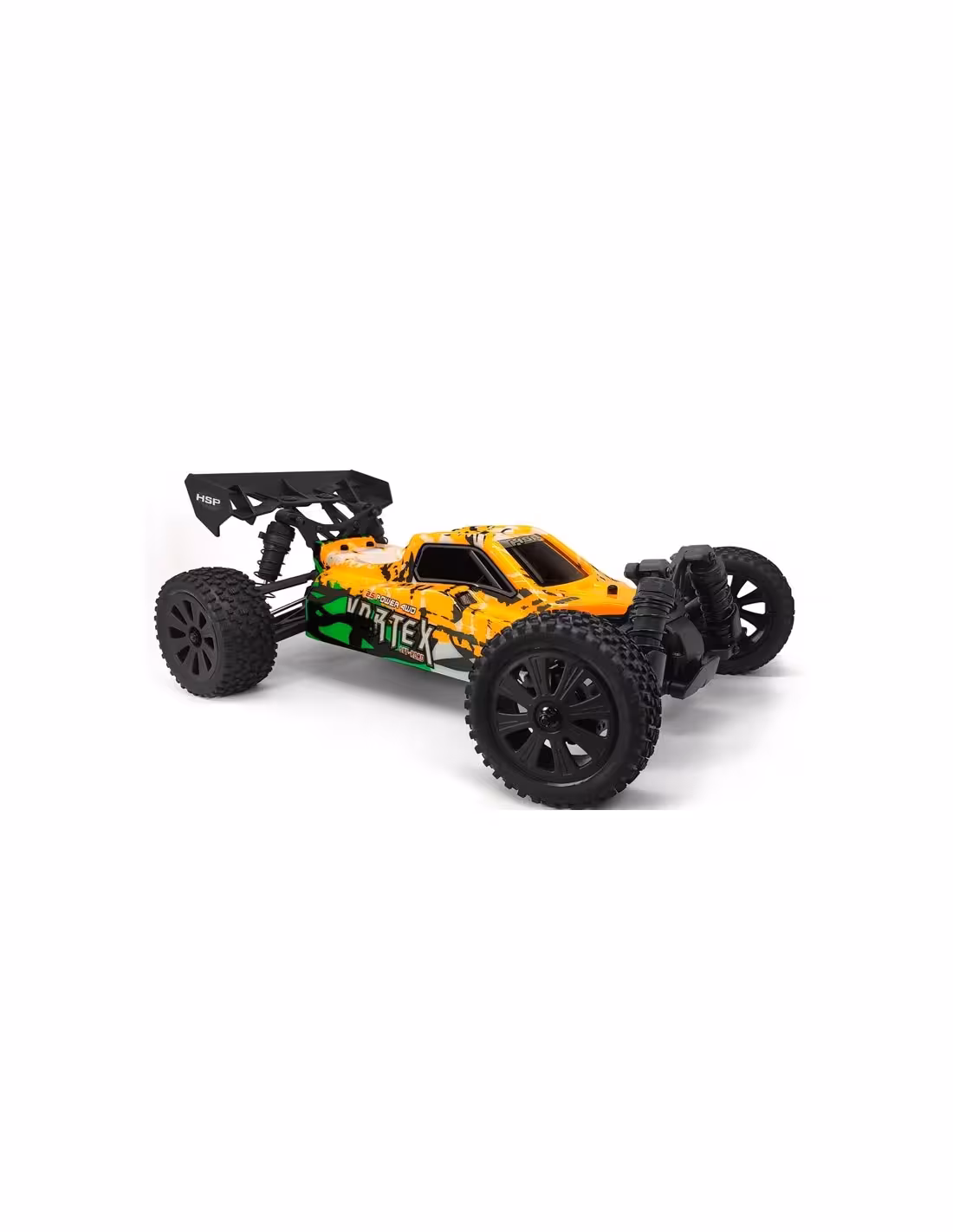 Le HSP Vortex Pro Brushless est un puissant buggy RC à l'échelle 1/10 conçu pour la grande vitesse jusqu'à 55 KM/H .Avec son châssis robuste, le Vortex est conçu pour résister aux défis les plus difficiles. Le modèle est propulsé par un puissant moteur AC de 3 300 KV Bruhless et un contrôleur étanche de 60 A, ce qui lui confère une accélération ultra-rapide et une vitesse de pointe élevée. La suspension durable est complétée par des amortisseurs à huile réglables, qui confèrent au modèle un excellent contrôle et amortissement des bosses et des impacts. Les roues et les pneus sont conçus pour une charge maximale. Grâce à leur motif agressif et à leur composé hautement adhésif, ils offrent une excellente traction sur n'importe quelle surface.