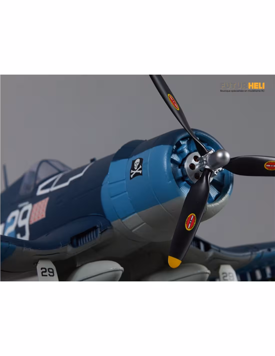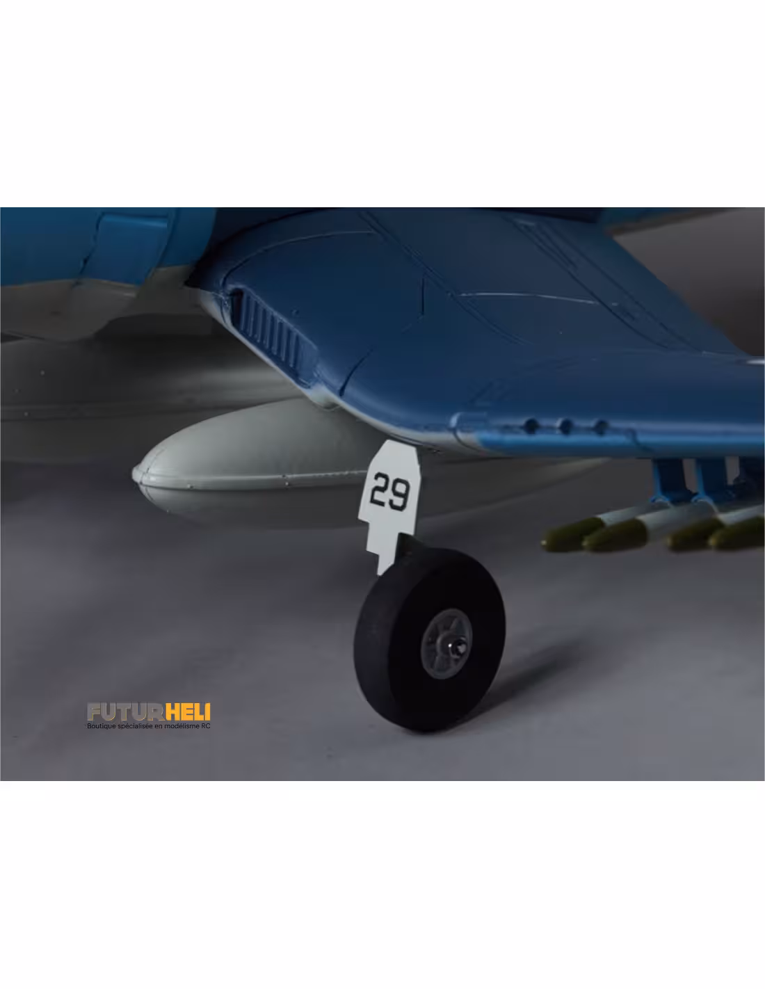 Le F4U Corsair est propulsé par un puissant moteur brushless 1300 Kv et par un contrôleur brushless 20 A. En combinaison avec une batterie LiPo 2S, le warbird a assez de puissance pour réaliser des figures spectaculaires.