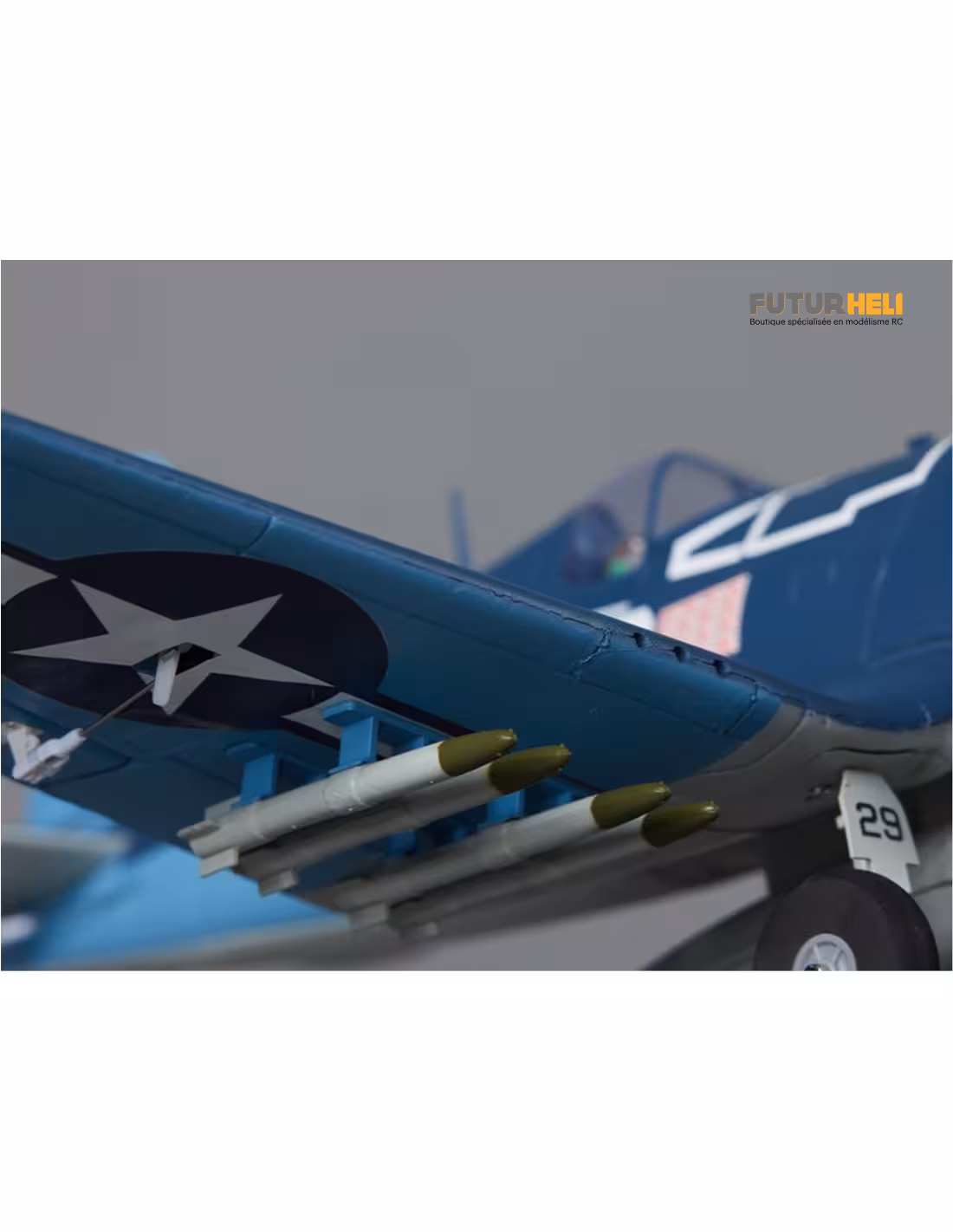 A propos : Le F4U Corsair fait partie de la gamme des mini-warbirds Derbee. En plus du F4U, un A-1 Skyraider et un P-51 Mustang sont aussi disponibles, à la même échelle et dans diverses couleurs.