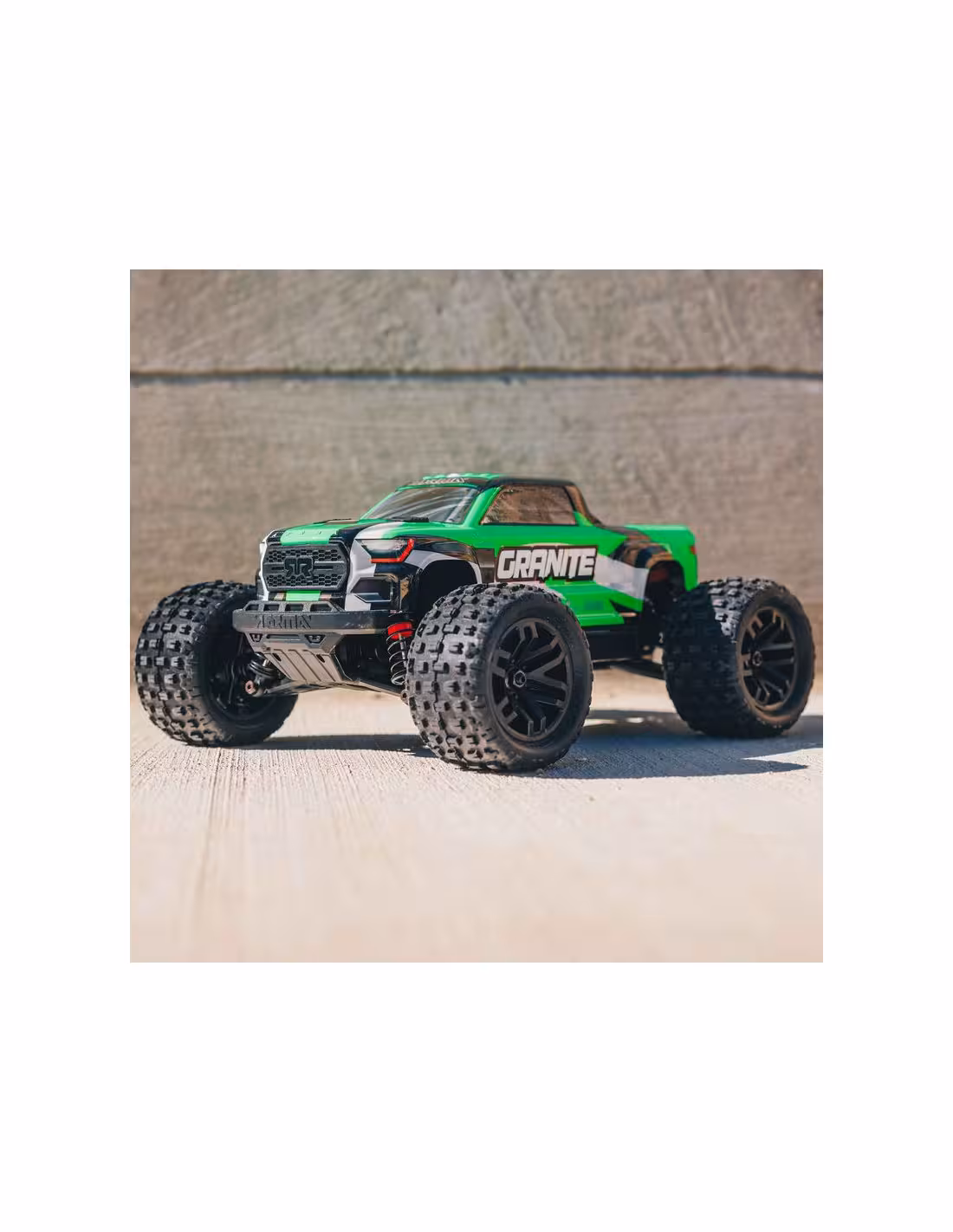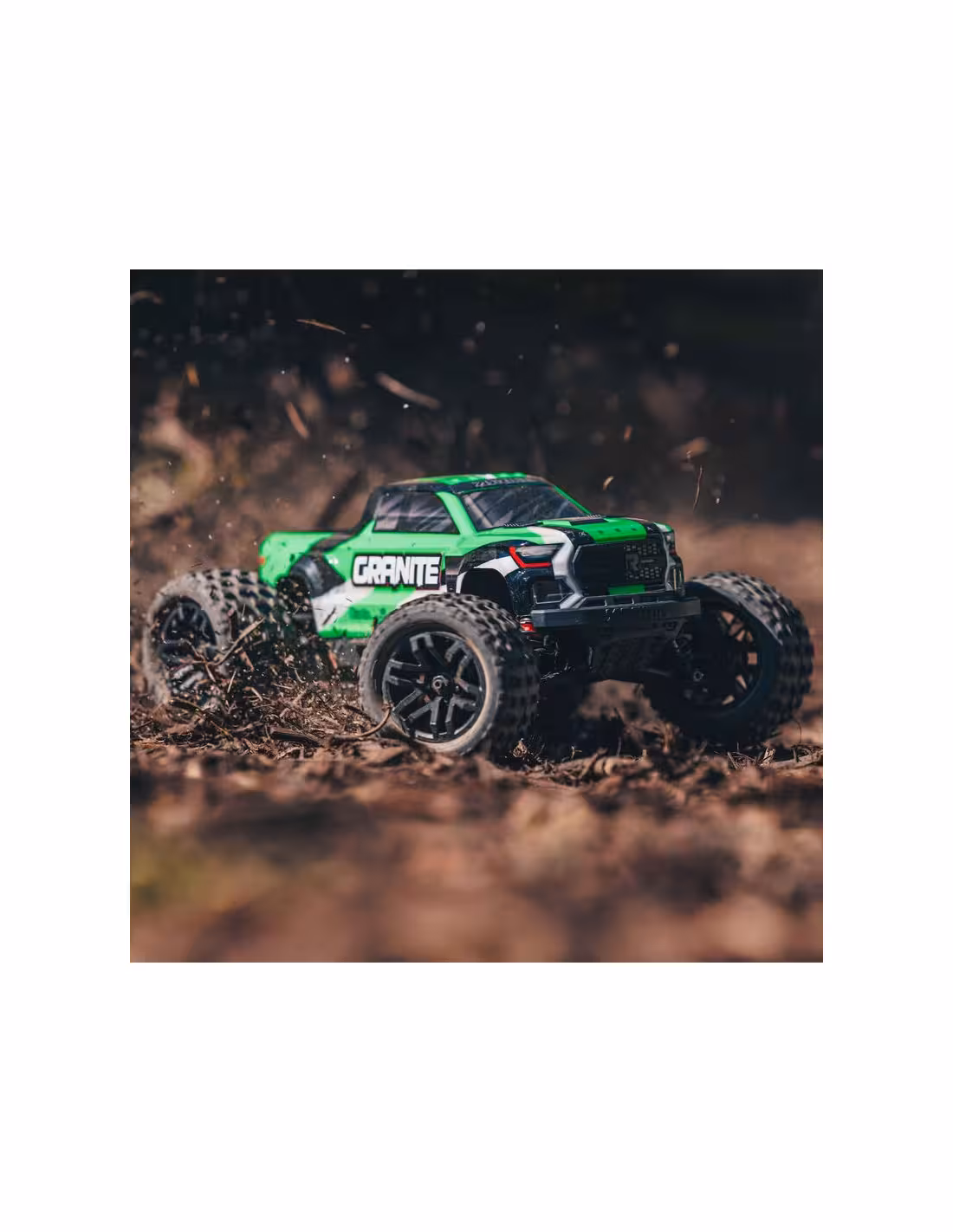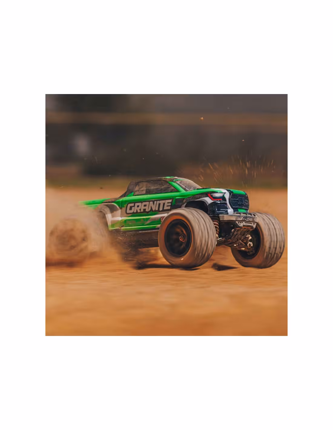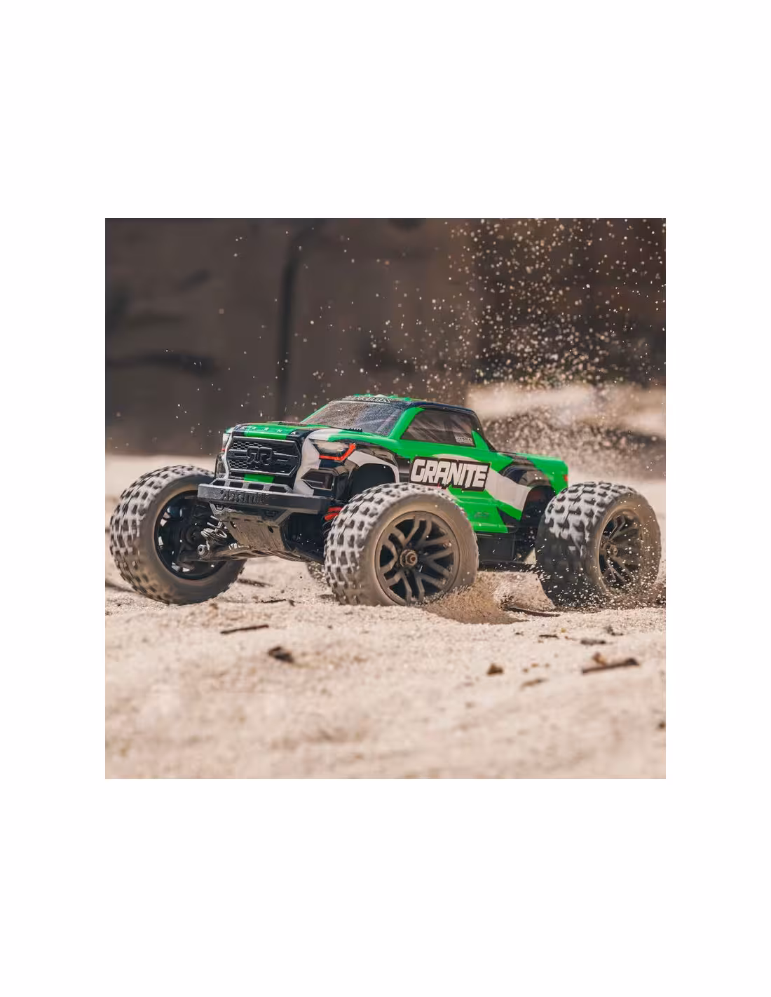Le Monster Truck GRANITE GROM 4X4 d'ARRMA offre des sessions de bashing faciles au quotidien, que vous soyez débutant ou expert en RC. Malgré sa taille réduite, il maintient les normes de qualité élevées de la marque. Son design sans clips facilite le retrait de la carrosserie tout en restant sécurisé. Robuste et maniable, il excelle dans les cascades grâce à son châssis résistant, ses pare-chocs absorbeurs d'énergie et sa transmission 4 roues motrices à engrenages métalliques. Équipé du moteur MEGA 380 brushed, du servo de direction Spektrum™ SX110, et d'un ESC étanche, le GRANITE GROM 4X4 est prêt à affronter toutes les conditions de bashing avec puissance et durabilité.