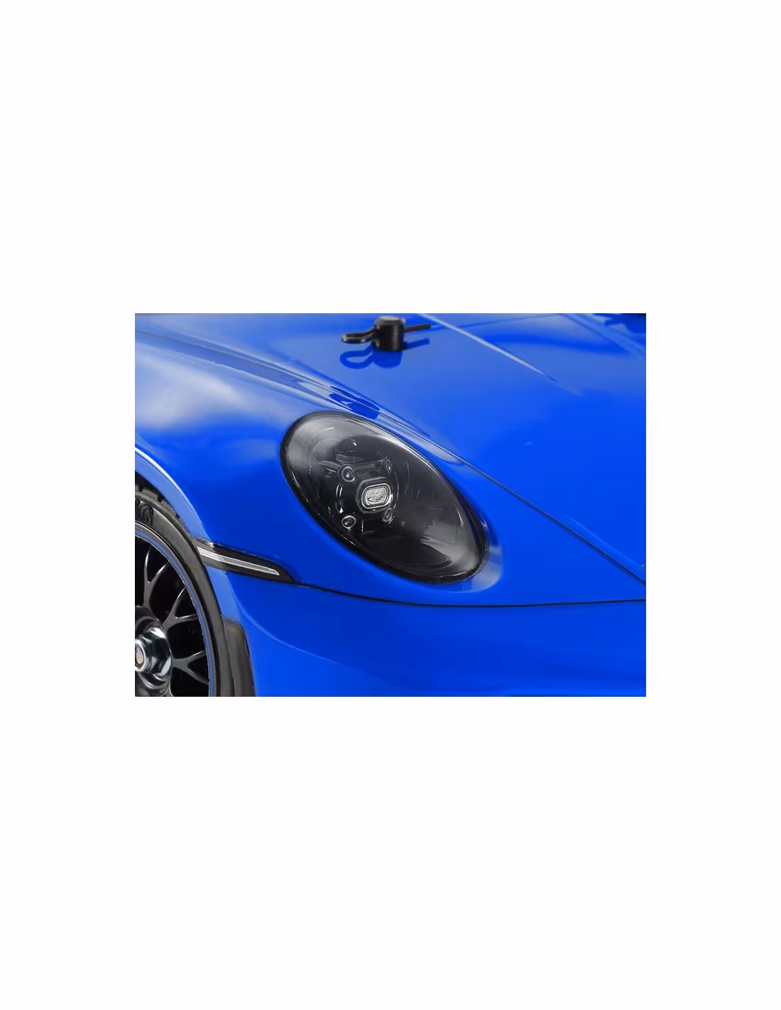 • Carrosserie polycarbonate réplique fidèle de celle de la Porsche 911 GT3 (992) prépeinte en PS-30 Bleu Vif.