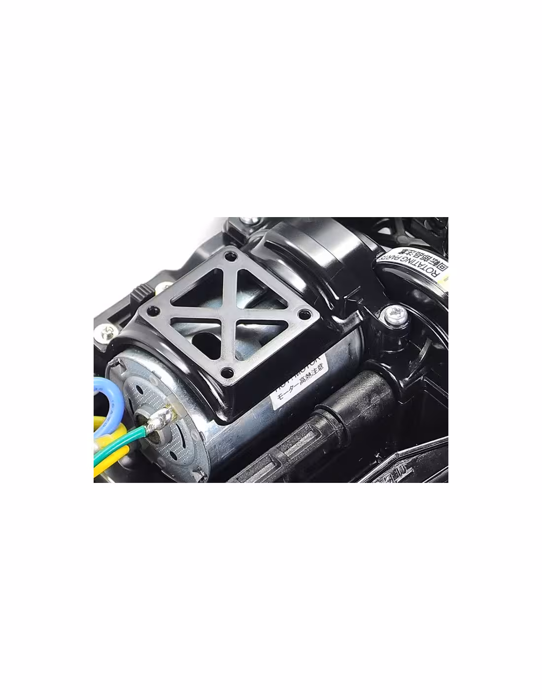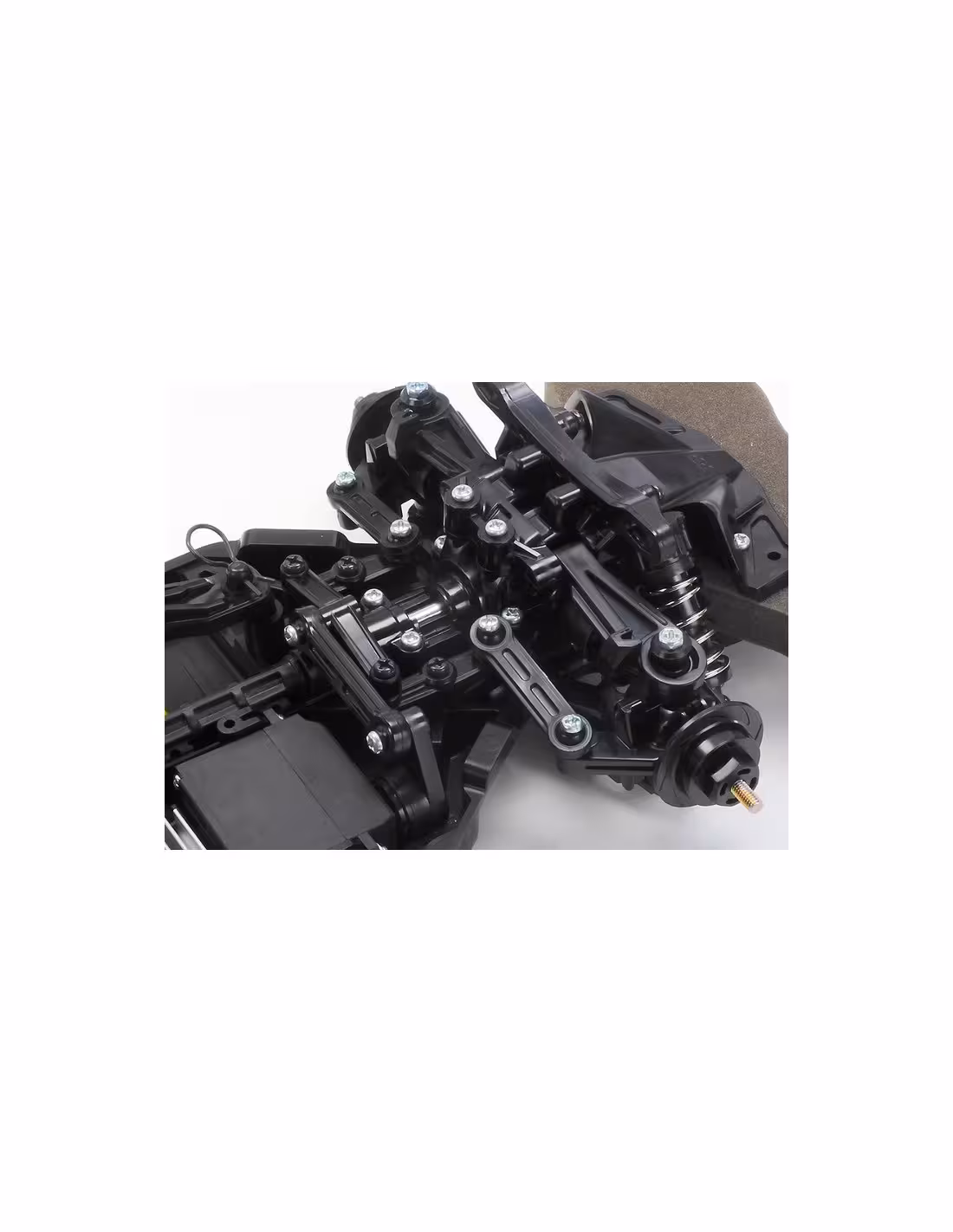 Il s'agit d'une version limitée de la Porsche 911 GT3 Tamiya 47496 en kit radioco-mmandé avec carrosserie pré-peinte, adaptée aux débutants et aux passionnés. Le kit sur châssis TT-02 recrée la 911 GT3 avec une carrosserie détaillée en polycarbonate. La vraie 911 GT3 de 7e génération présente une suspension avant à double triangulation, un moteur à six cylindres à plat, des composants légers et une conception aérodynamique améliorant ses performances. Le capot avant en fibre de carbone, une première pour les véhicules de série, offre une conception légère. De plus, le support d'aile suspendu procure une force vers le bas accrue et réduit la trainée .