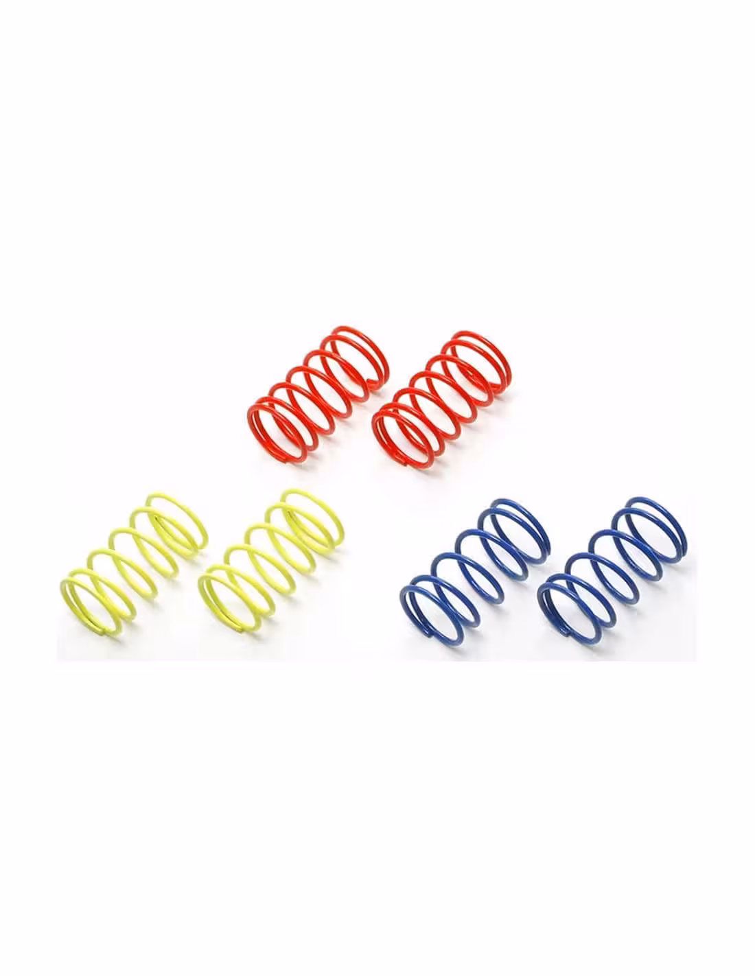Tamiya 53163 .Cet ensemble comprend deux ressorts souples (rouges), moyens (jaunes) et durs (bleus). Utilisez différentes rigidités pour obtenir la configuration parfaite pour votre style de configuration et la piste.