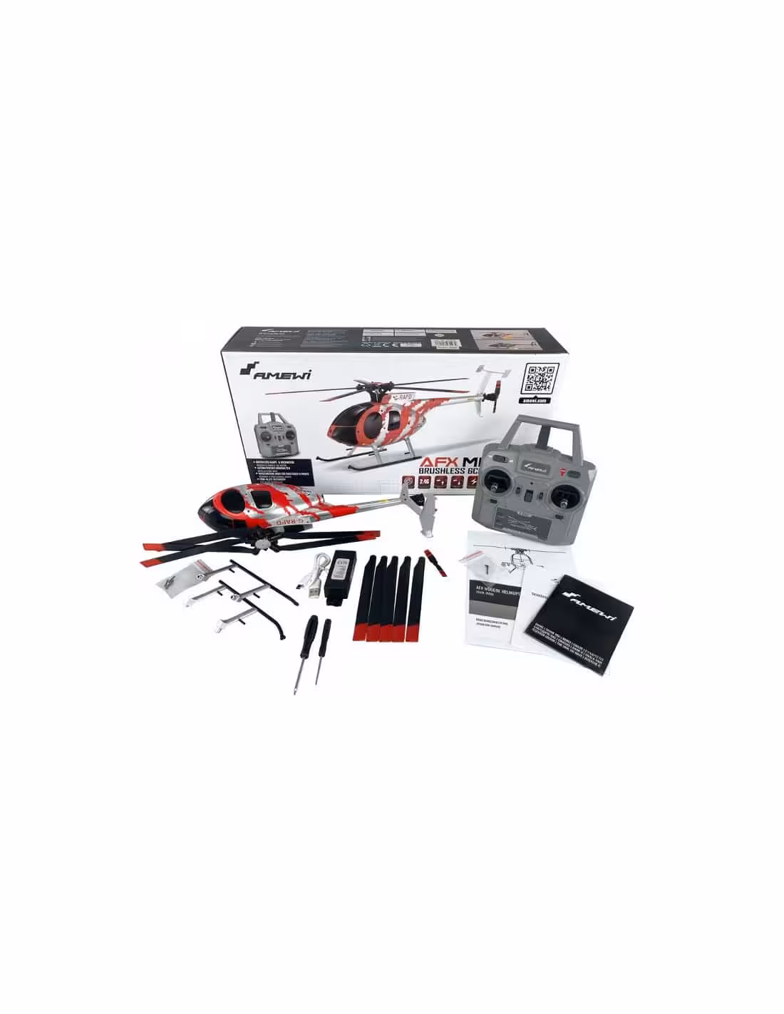 Équipé de moteurs sans balais pour le rotor principal et le rotor de queue, l'hélicoptère offre une puissance suffisante pour des manœuvres de vol dynamiques. L'électronique gyroscopique intégrée stabilise le modèle dans toutes les positions, procurant une expérience de vol sécurisée, même pour les débutants. Le comportement en vol stationnaire rappelle celui d'un hélicoptère coaxial, et en vol normal, le système fonctionne comme un hélicoptère contrôlé par la vitesse ou le pas. La stabilisation automatique reprend lorsque les commandes de la télécommande sont ramenées au neutre, évitant ainsi les surprises en vol. Le modèle comprend également un système de démarrage et d'atterrissage automatique sur simple pression d'un bouton, ainsi que différentes phases de vol (débutant, avancé, professionnel) pour ajuster la sensibilité du modèle. L'hélicoptère dispose également d'un système de maintien d'attitude (maintien automatique de l'altitude). Le système de radiocommande fonctionne sur la bande 2,4 GHz sécurisée et sans interférences, et en raison de sa puissance et de sa taille, le modèle est relativement peu sensible au vent, le rendant même adapté à une utilisation en extérieur par conditions légères de vent.