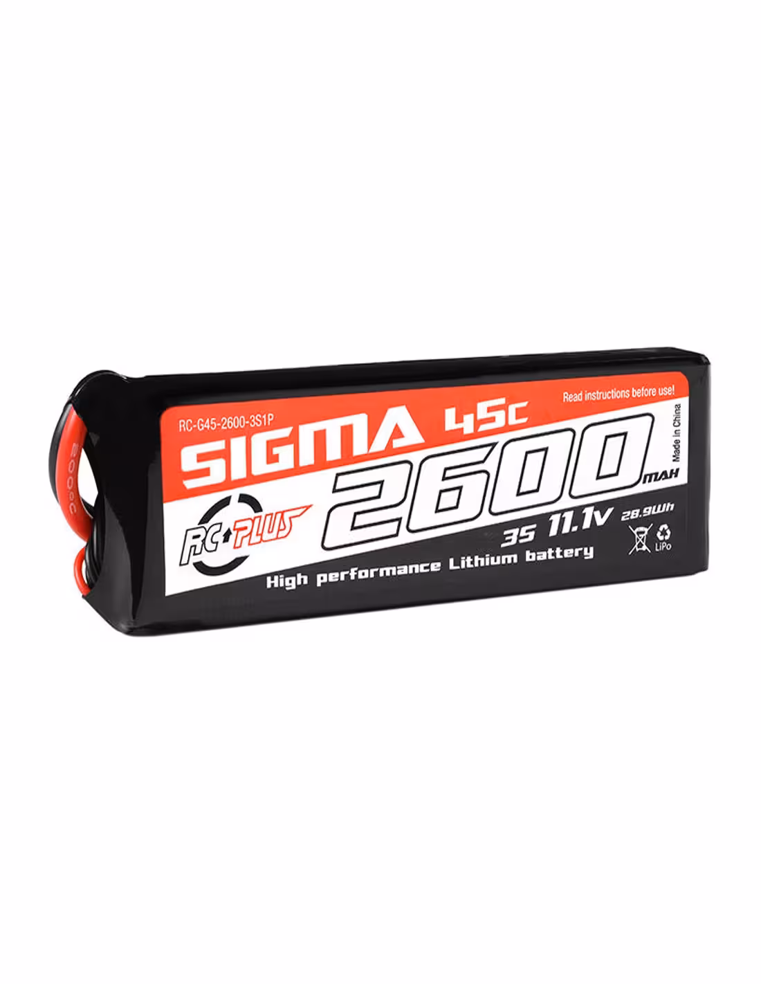 Batterie lipo RC+ d'une capacité de 2600 Mah en 3 éléments soit une tension de 11,1v équipé d'une prise XT-60 .