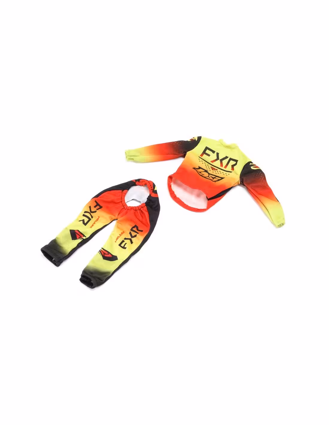 Ensemble pantalon et maillot jaune et rouge avec logo FXR pour pilote moto losi Promoto . référence LOS260008