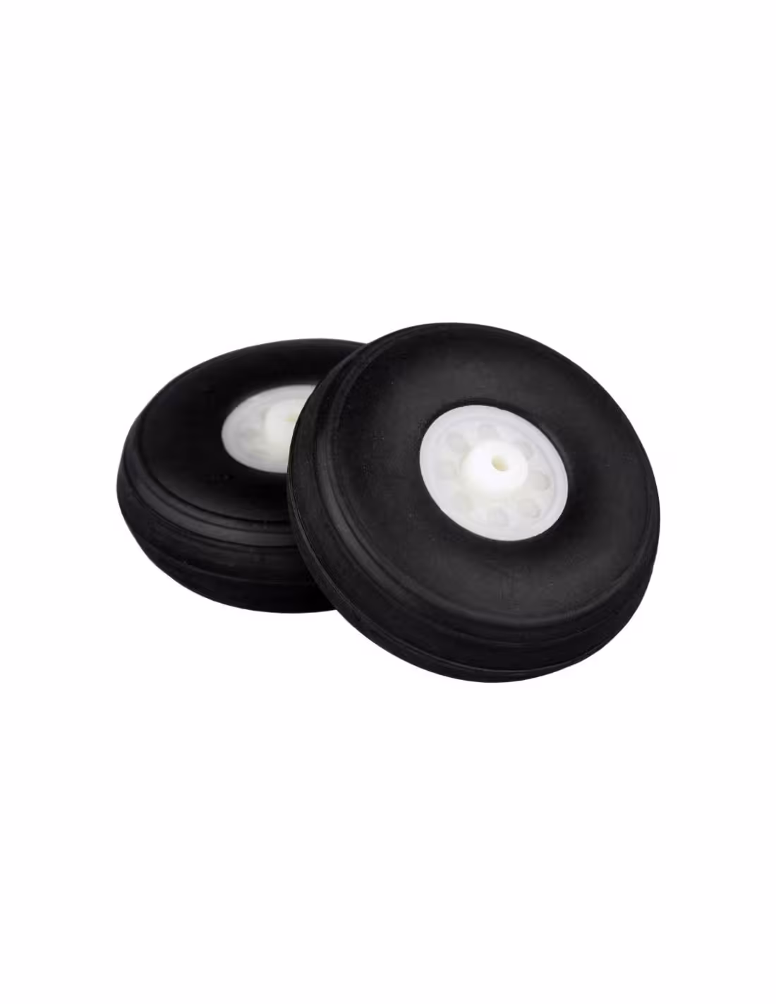 Les roues légères 38mm fabriquées à partir d'un pneu en plastique mousse moulé avec une surface lisse, qui est définitivement connecté à une jante en nylon robuste. Le mousse spécial utilisé rend les pneus particulièrement résistants à l'usure ou à la formation de plats, lorsque les roues restent dans la même position sous charge pendant une période prolongée. Bien que les pneus soient relativement fermes, ils restent légers et assez flexibles pour absorber les impacts durs lors d'atterrissages difficiles. Comme il ne s'agit pas de pneus à air gonflables, l'effort de réparation et d'entretien associé est éliminé. Ainsi, les roues légères visuellement attrayantes constituent également une alternative économique pour les modèles d'avions de haute qualité.