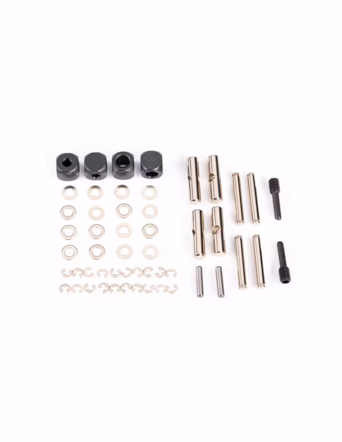 Traxxas 5452X Articulations pour cardans Homocinétiques . Le kit de reconstruction de joint universel d'arbre de transmission comprend des supports (4), des goupilles transversales (4), des goupilles à tête (4), des goupilles à vis (2), des goupilles hexagonales (2) et des clips en E (6). Reconstruit 2 arbres de transmission.