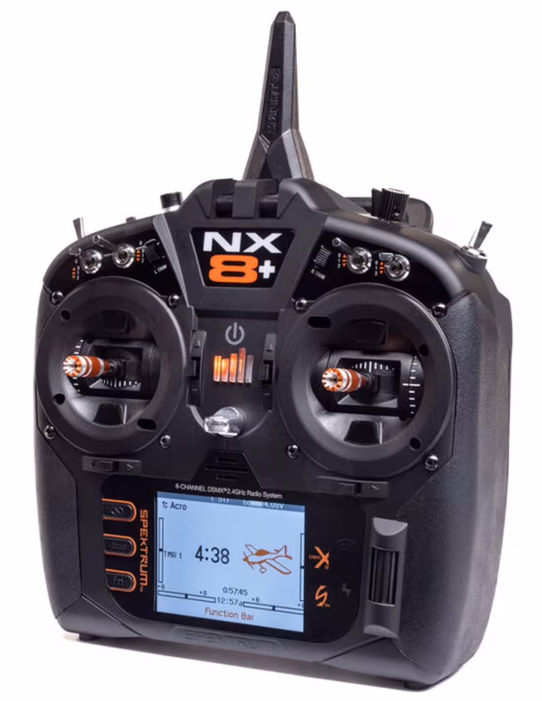 Dès sa sortie de l'emballage, le NX8+ est compatible avec la technologie Smart. Il est prêt à prendre en charge vos batteries Spektrum™ Smart et vos contrôleurs Smart Avian™ afin que vous puissiez recevoir des données de télémétrie essentielles à portée de main en temps réel. La connectivité Wi-Fi de la radio NX8+ ajoute encore plus de commodité. En plus de terminer l'enregistrement du produit directement depuis l'émetteur, vous pouvez télécharger instantanément les mises à jour du micrologiciel. De plus, l'émetteur dispose d'une programmation directe AS3X+ et du dernier téléchargement de fichiers Smart Transmitter innovant depuis le récepteur. C'est une expérience utilisateur moderne.